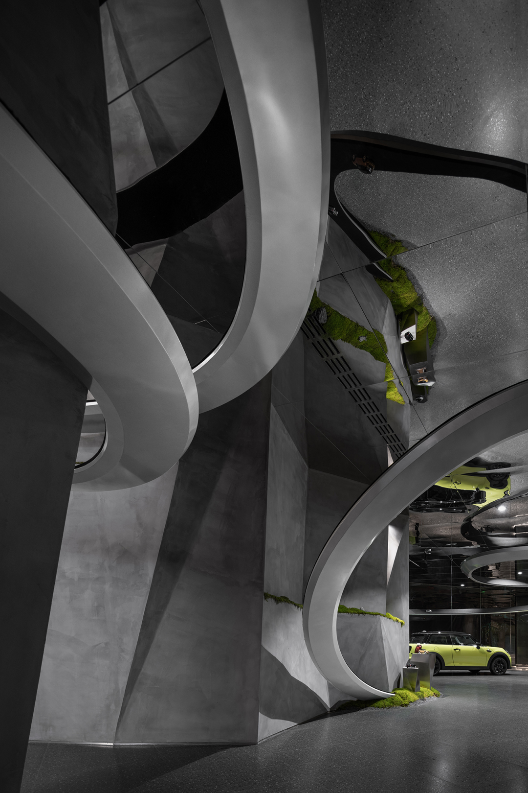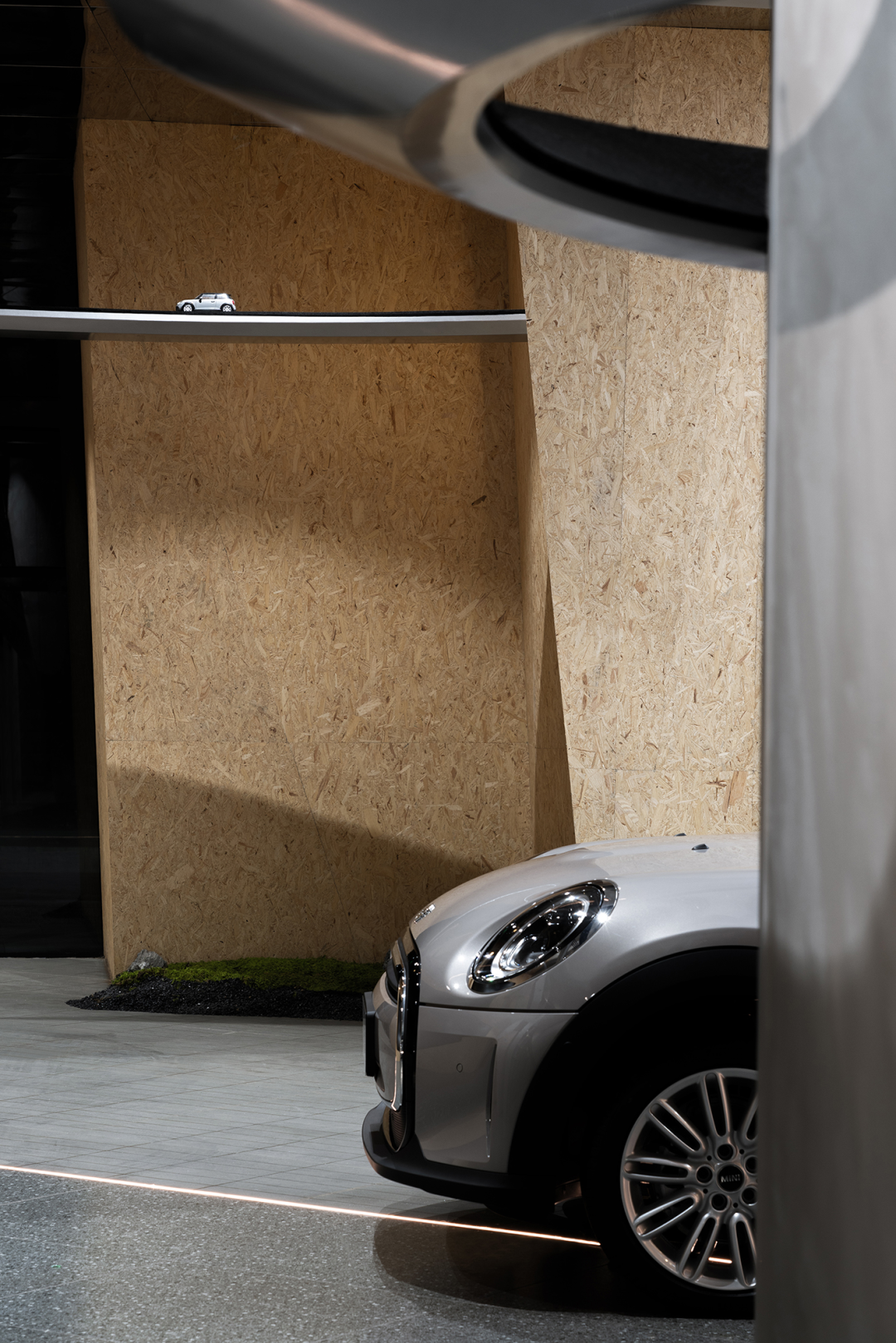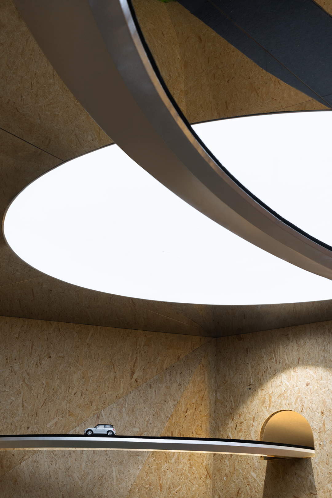 展厅中的自然元素与设计构造相互交融,为空间注入了亲和友善的氛围,营造出更加自然舒适的场域环境。MINI品牌以“城市展厅”的定位,打造出一个不仅仅是商业展示空间,更是情感链接的场所,让人们在与展厅对话的过程中深入了解品牌的精神理念。