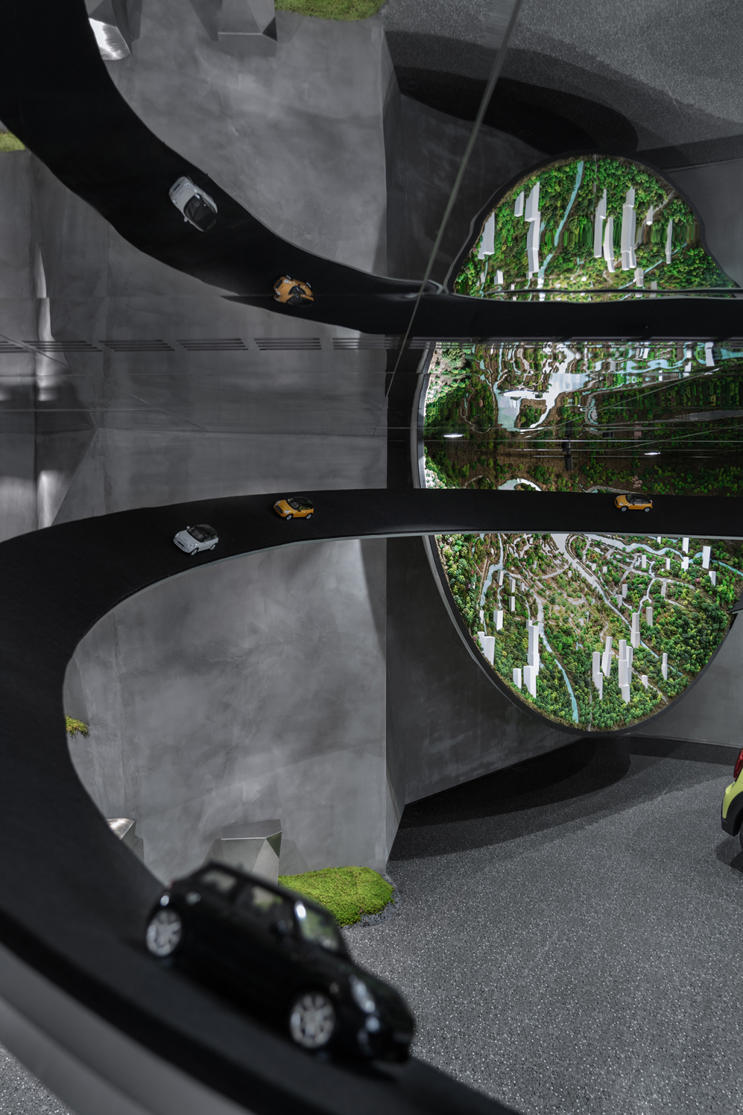 设计团队将MINI品牌的精神比喻成一个亲密的朋友,虽然体积不大但能够陪伴你前往任何地方,随意自由、亲和友善。在这个“玻璃盒”中,城市人文和自然景观巧妙地融合,错落有致的设计构造形成了概念性的山体,让人们穿梭在MINI的世界中,越过山川、寻觅森林,在空间中自由舒展,感受到广阔的世界。