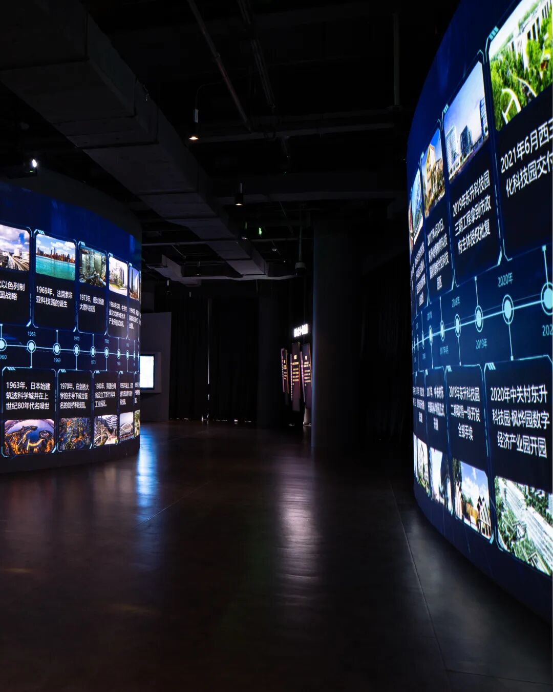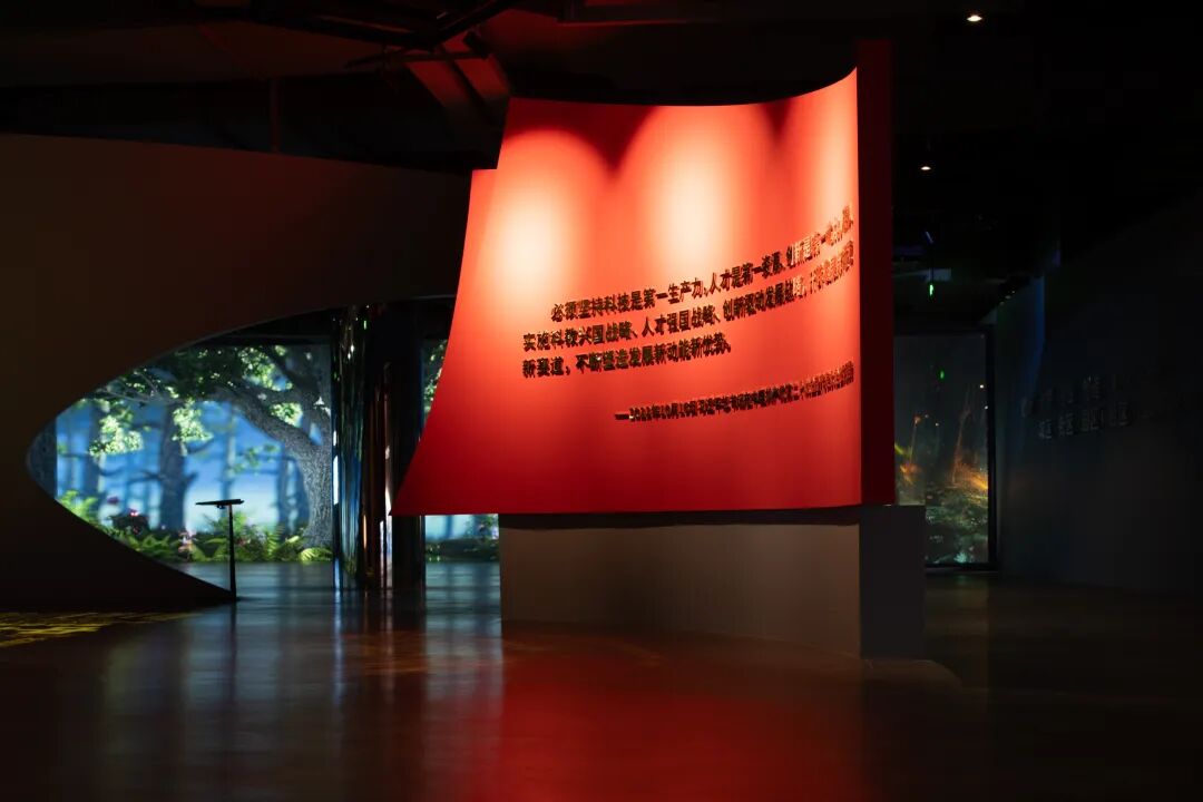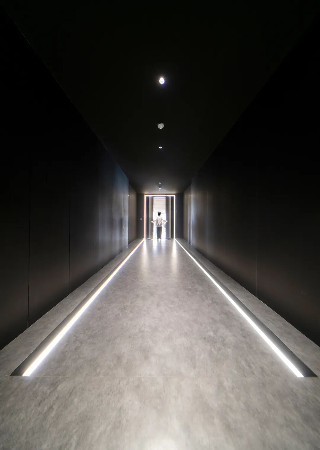 展厅的出口是一段笔直的通道。寓意着奋斗者们不断探索,挑战未知,勇往直前,开启科技园区的新篇章。