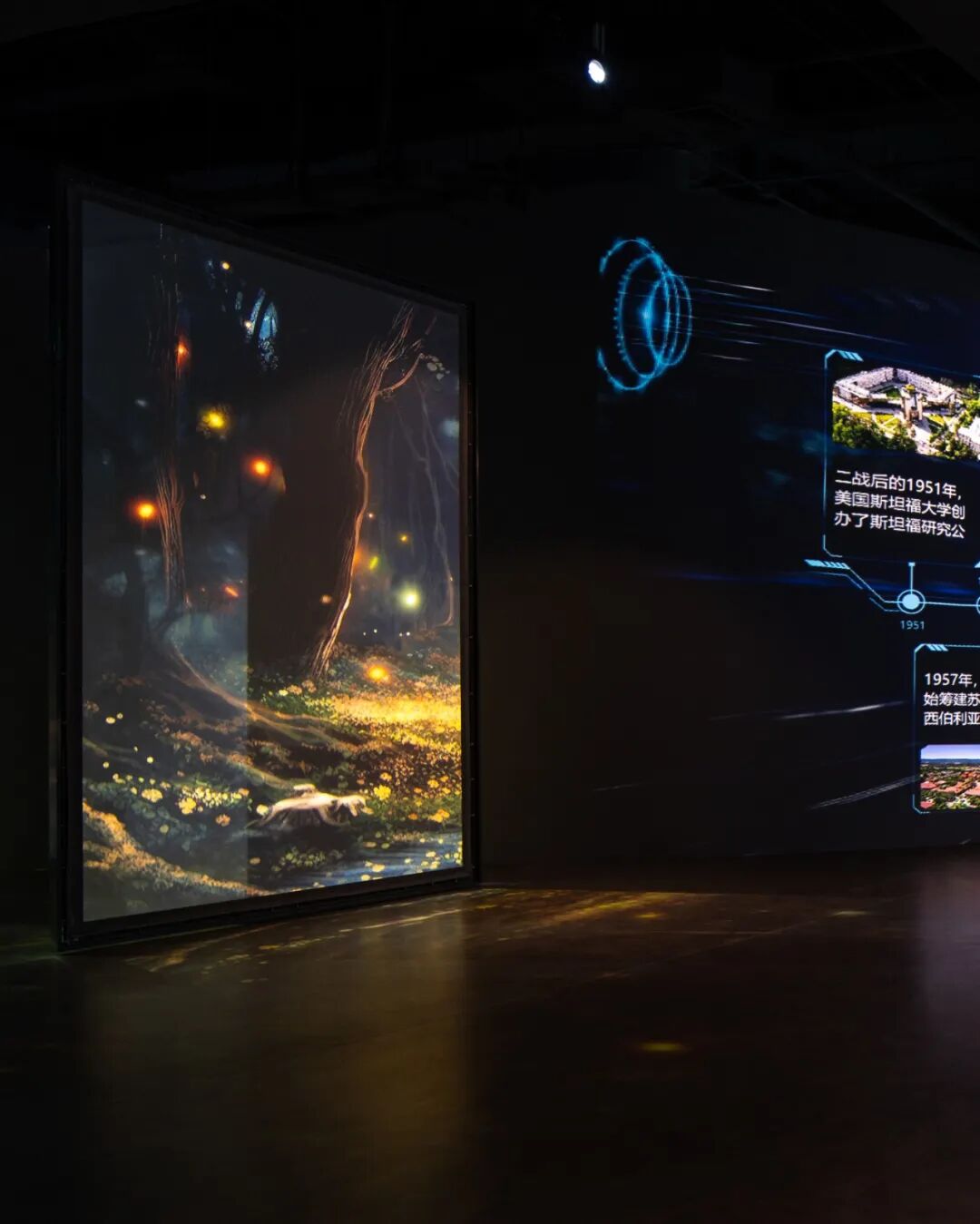 展厅的尾声是一段较为轻松的世界科技园区漫步之旅,梦幻的星光森林在空间的收尾处再次点题。