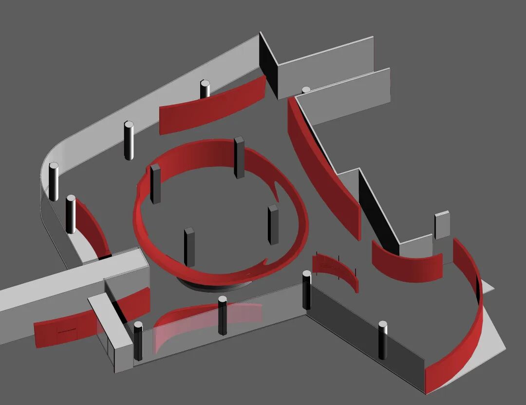 主展厅与其他空间在视线上相互渗透,让整个展厅的视觉层次更加丰富。