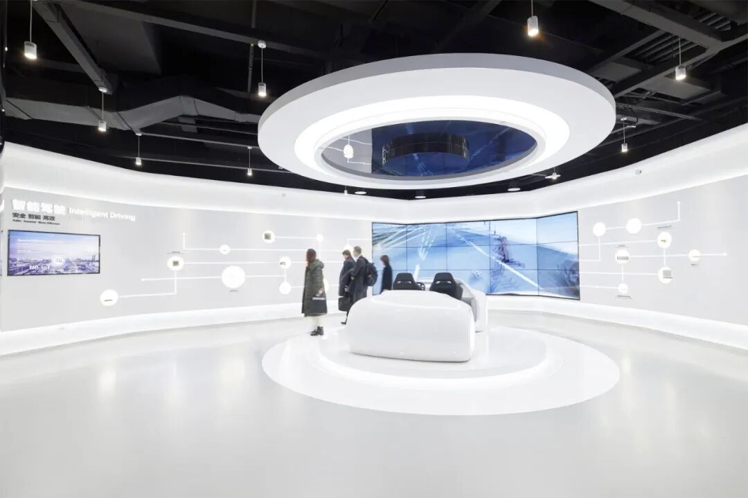 Under the condition that the main building structure remains unchanged, through spatial reorganization, several spatial blocks are connected in series and flow. The exhibition hall is planned to be divided into seven areas, namely: enterprise introduction area, product display area, terminal display area, intelligent driving area, intelligent living area, intelligent industrial area and intelligent agricultural area. We extract the development profile and technological characteristics of the brand itself, build a technology exhibition hall that aggregates influence in the industry, and build a high-end platform for interaction, interaction and experience. The overall futuristic and technological lines create an immersive experience. The designer strengthens the streamlined surface properties in the shape, so that the resulting fluidity guides the entire visual route.