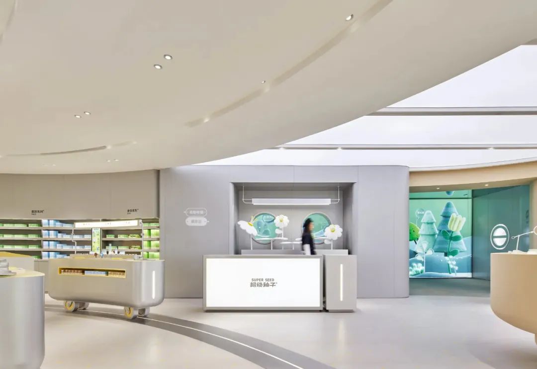 The introduction of this "super farm" concept makes the offline experience store of Super Seed a real "skin care secret place". The design team cleverly integrated elements of the virtual farm into the actual space to create a unique visual and sensory experience. Customers can feel the magical atmosphere of the farm of the future, while also gaining a deeper understanding of the product concept and value of Super Seed.
