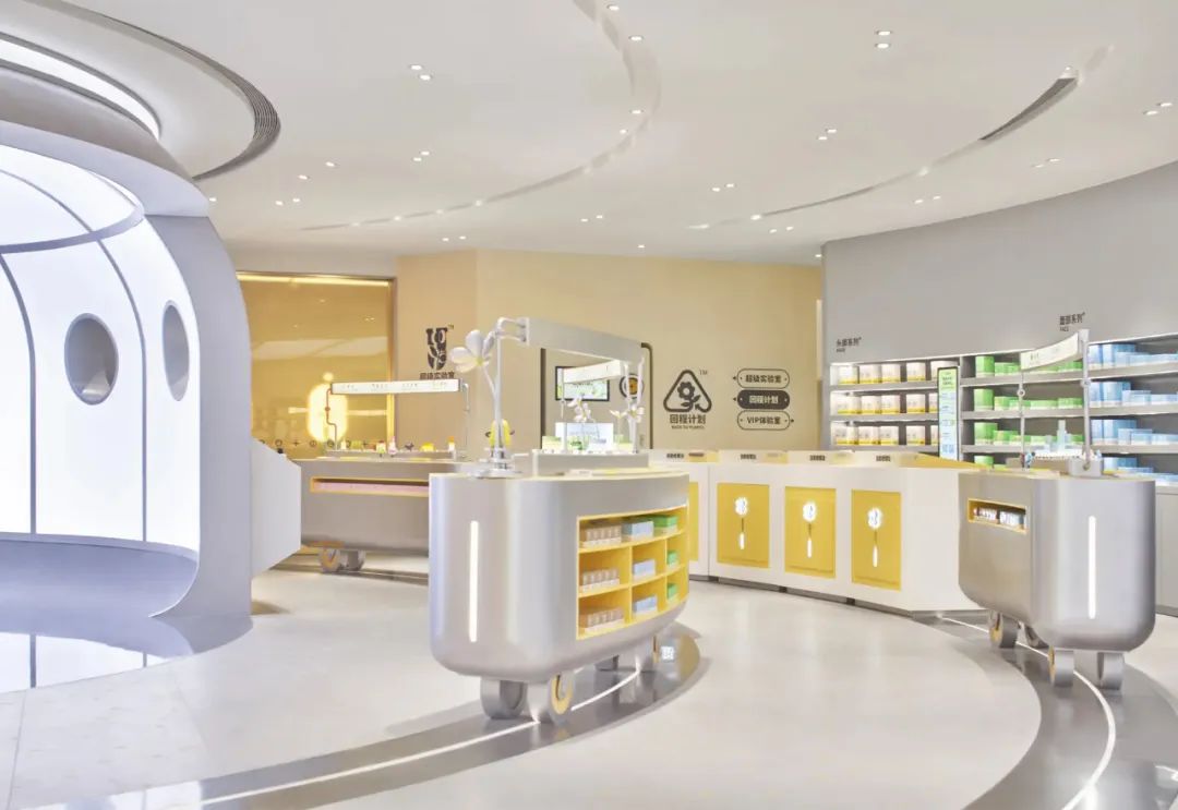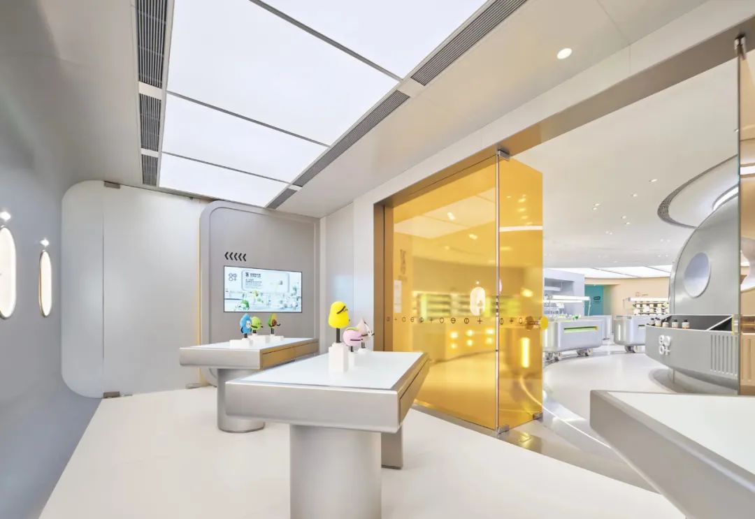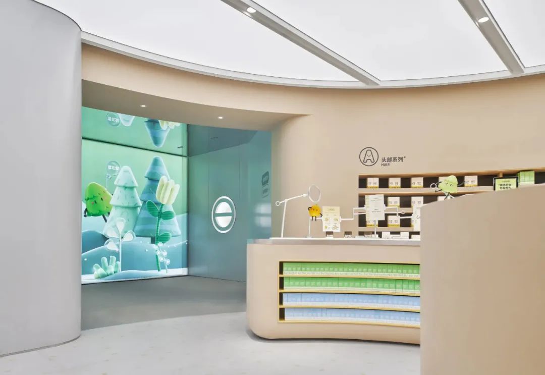 为了将“超级农场”概念更好地融入线下体验店,立品设计团队在空间布局、陈列设计、环境氛围等方面进行了精心的设计。每一个角落都散发着未来农场的氛围,从植物元素到科技感,都在为顾客创造一种全新的护肤体验。 In order to better integrate the concept of "super farm" into the offline experience store, the design team of Lipin has carefully designed the space layout, display design, environmental atmosphere and other aspects. Every corner exudes the atmosphere of the farm of the future, from plant elements to technology, all creating a new skincare experience for customers.