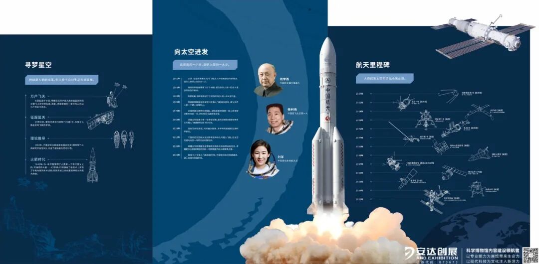 墙面图文叠加立体剪版(安徽省馆“航天发展里程碑”图文)
