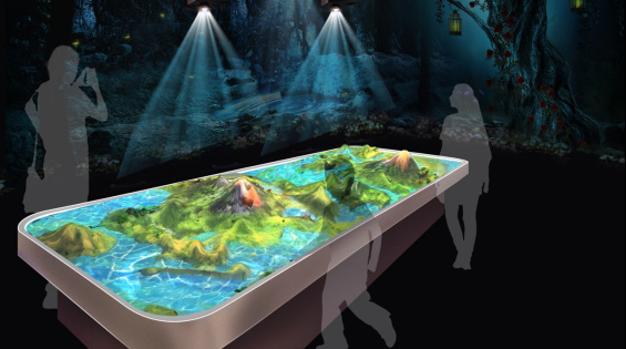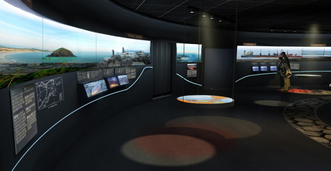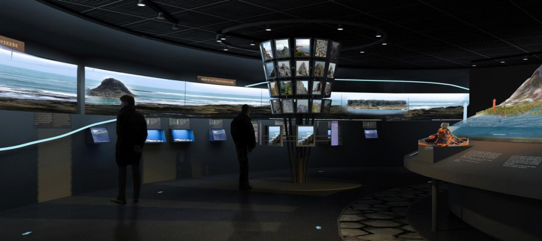 博物馆展厅中,与多媒体技术相融合的动态场景模型可以带领参观者感受阿苏火山变迁的整体过程,结合声音、光线、语言一同表现出来,播放的快慢参观者都可以随意调控。
