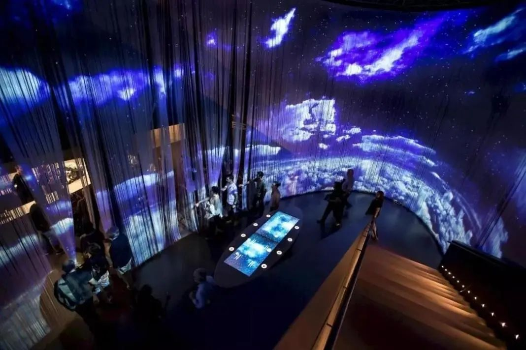 例如青岛贝林自然博物馆,运用数字影像和交互技术,打造出互动体验型自然博物馆。馆内标本姿态多样,各标本相互组合形成完整的场景还原,让观众有身临其境之感。二层展厅的 “ 生命之树 ” 展品能够与一层展示区域产生互动,观众在二层展厅借助 AR 望远镜可向下观看到叠加于一层展厅的虚拟互动影像,使观众得以近距离观赏这些历经亿年却依然栩栩如生的生物形象,仿佛穿越时空,踏入远古的梦幻之境。
