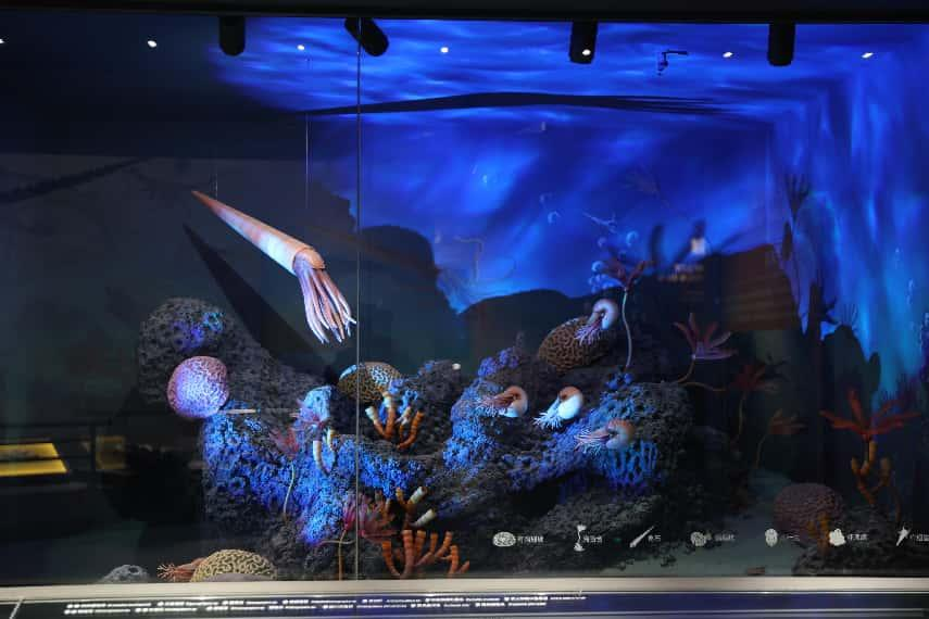 新疆地质矿产博物馆以“重返生命大爆发现场”为核心叙事,在古生物展区打造了全息生态景箱全景式寒武纪海洋生态剧场。将5.4亿年前新疆海域的神秘世界搬入展厅,再现地球生命从简单到复杂的革命性跃迁。
