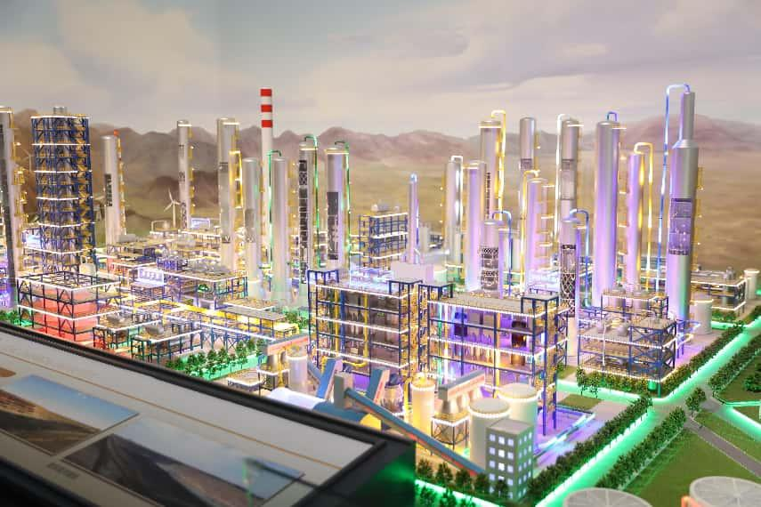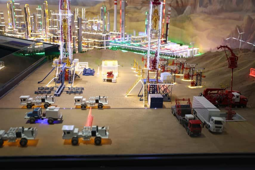 第五展厅“矿业兴疆”:设计团队以“从地心到云端”为核心理念,通过油气加工产业链全景模型沙盘,将新疆油气勘探、开采、炼化、应用的万亿级产业链,转化为一场融合数据艺术、工业美学与深度交互的沉浸式体验,展现新疆作为国家能源战略枢纽的硬核实力。