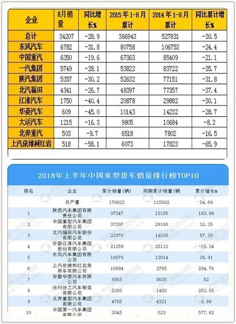 2015年是重型货车的寒冬,10大重卡销量纷纷下跌。