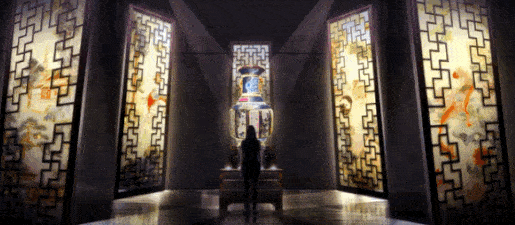 将釉彩大瓶的实物装置放在空间正中央,两侧林立着四扇巨型古窗,巨型屏幕的变化兼顾美学与光影。