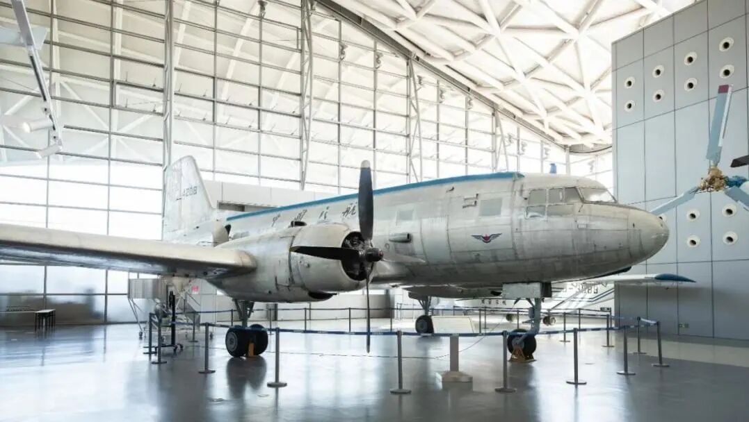 走进民航博物馆陈列展区,作为镇馆之宝的伊尔-14(4208号)领导专机赫然入目。