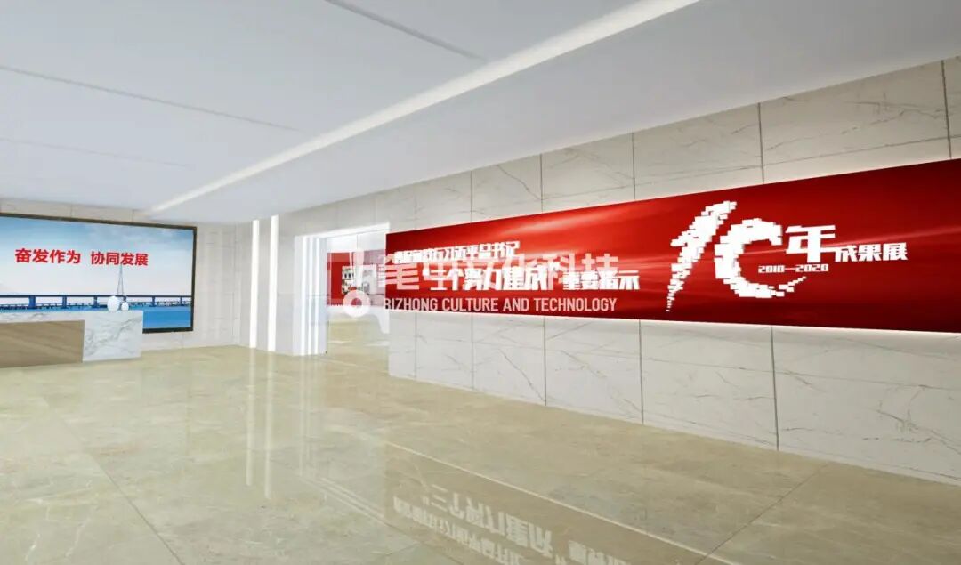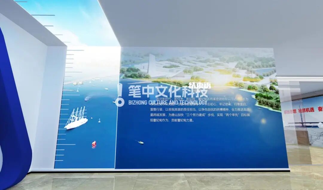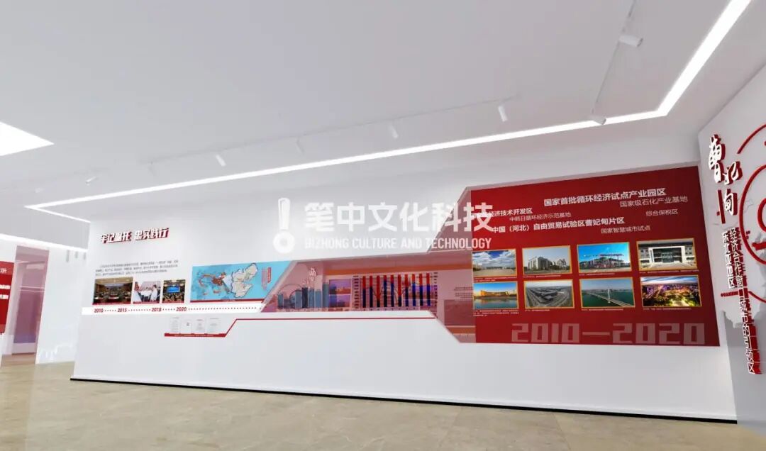 笔中文化科技集团通过创意要素,凸显核心展示目的,用一个大创意打造曹妃甸10周年成就展厅的独特气质。