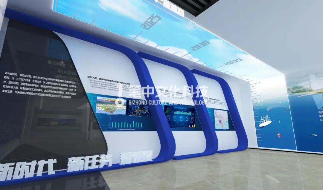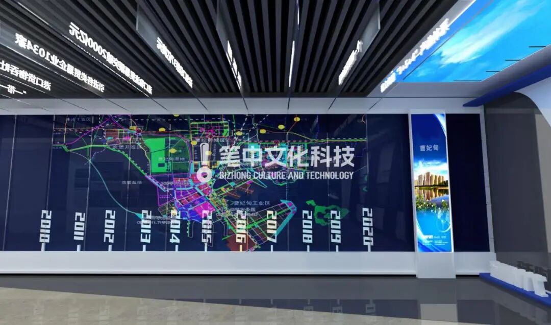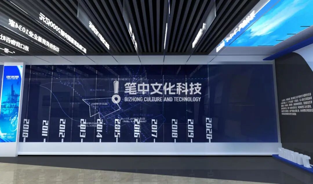 笔中集团数字新创意设计,以时间为刻度,围绕各建设目标,精细且明确的建设规划,用发展的时间去精确规划展厅的展示内容。