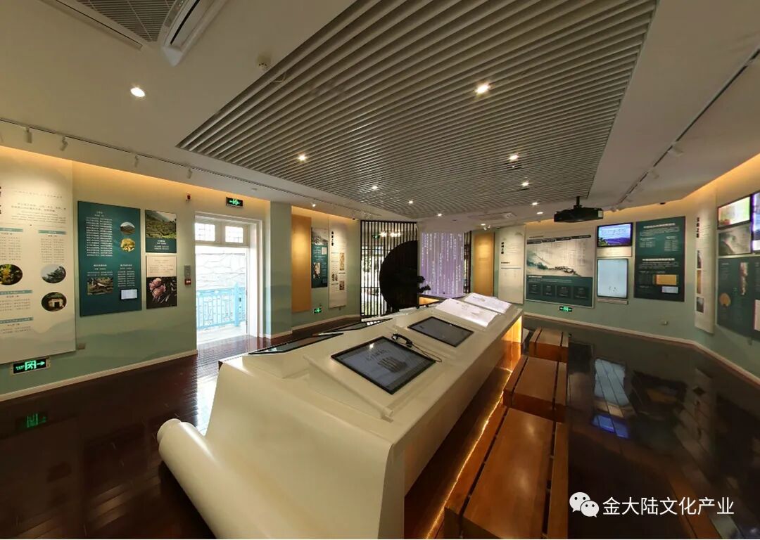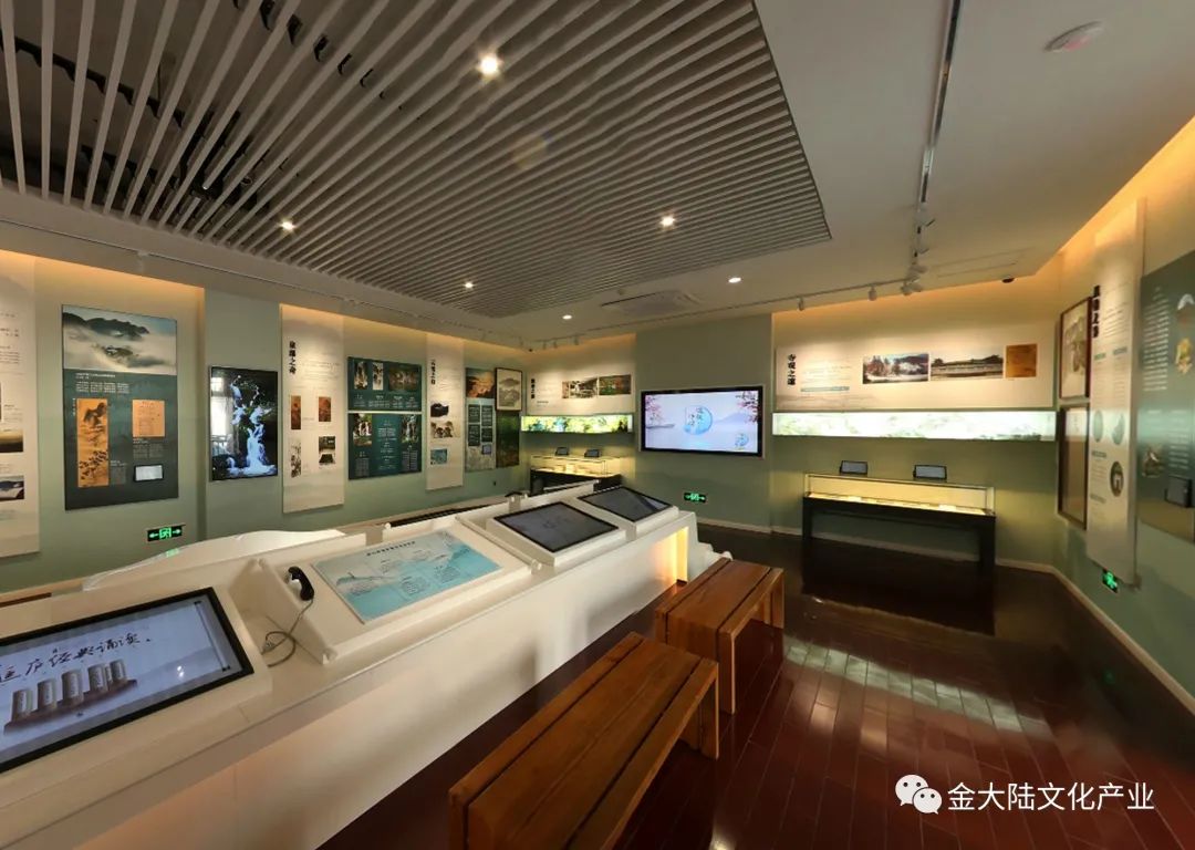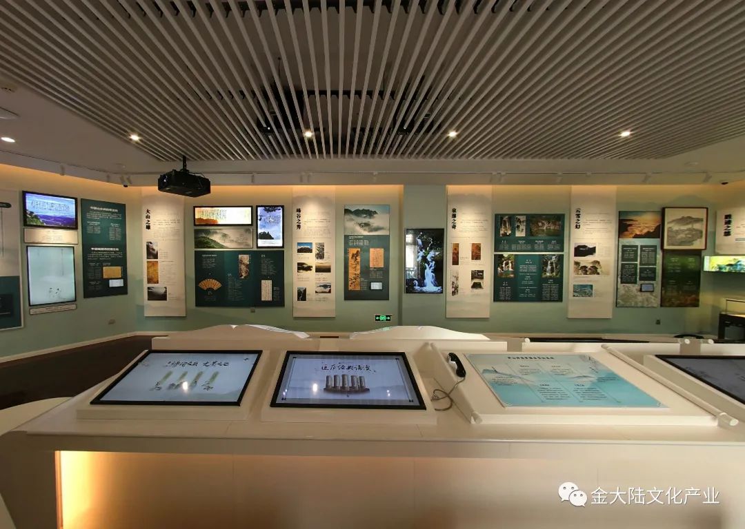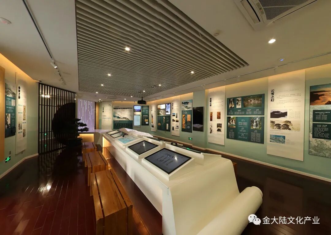 设计师在有限的空间中进行设计,大量使用查询、互动等多媒体手段,特别是中间区域设计的 “汉白玉大书”等艺术造型,不但将展陈设计的精致悦目,而且良好的表现出了庐山博大精深的文化内涵。