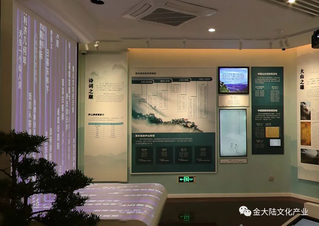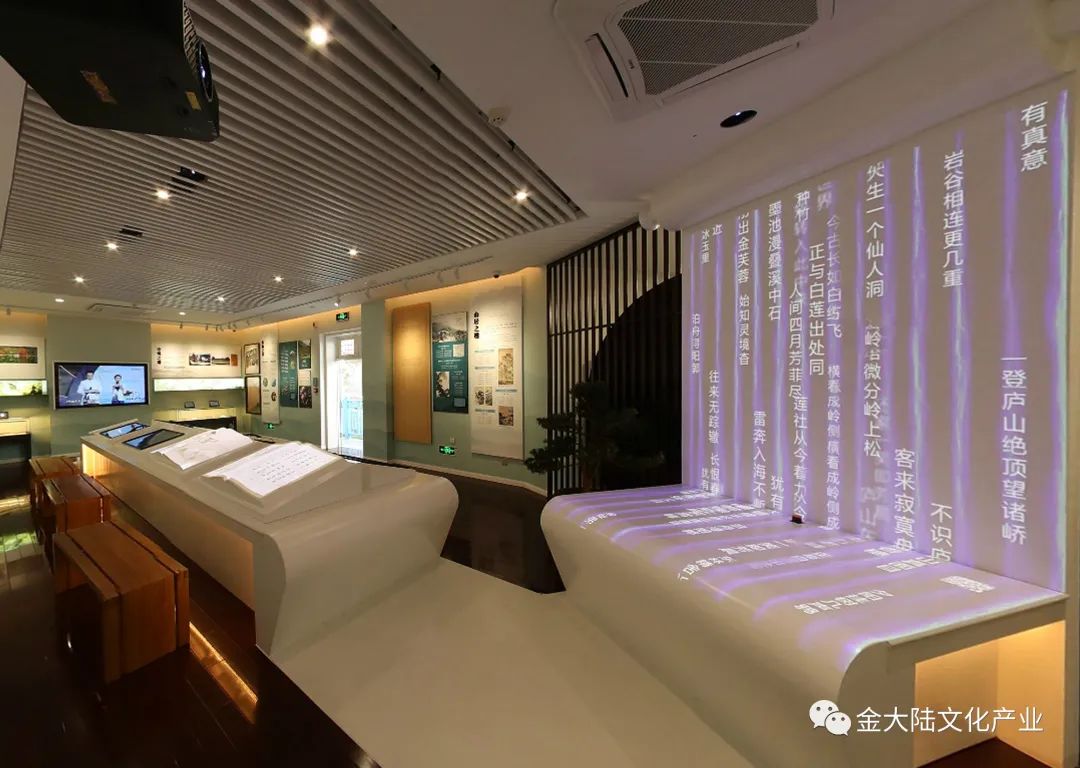 2019年7月,位于庐山市河西路25号附楼的庐山诗词博物馆建成开放。博物馆面积120平方米,主题为“山咏——庐山历代诗词陈列” ,共收藏历代16000余首诗词,金大陆承担了该馆的设计与制作任务。
