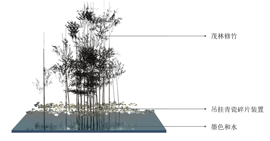 湖水如镜,竹影作画,墨色和水成调,在恬静儒雅的气氛中烘托青瓷色釉的淳厚温润。