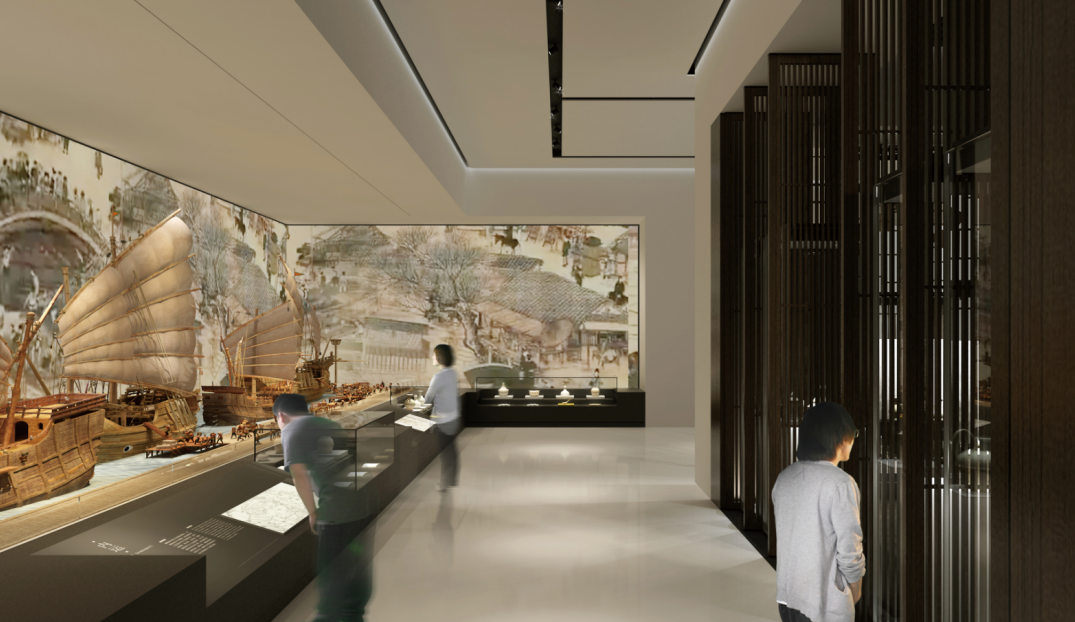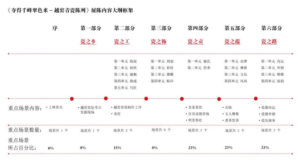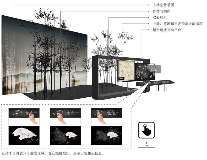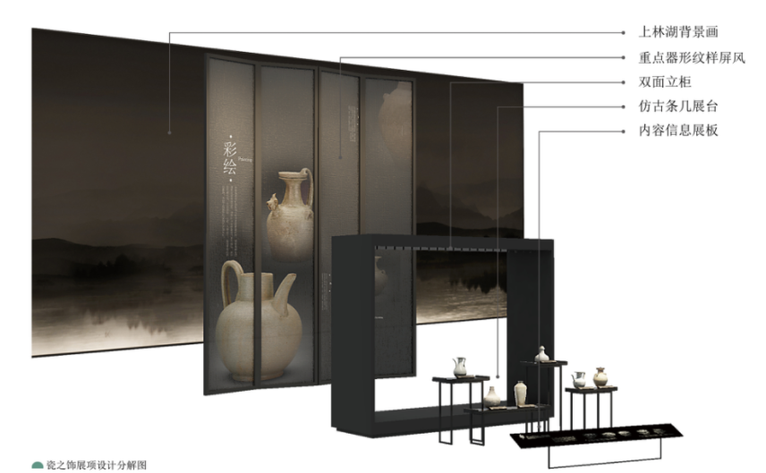 展馆以深掘海上丝绸之路文化内涵的视野,一展慈溪上林湖越窑青瓷的历史、艺术与文化魅力,展现慈溪在中华瓷器文明中的独特地位。以内容文本的基础,以精巧的形式与创意,将越窑青瓷的产地、工艺、装饰、海贸、影响等内容呈现出来,实现陈列设计美学形式服务于越窑青瓷实用美学内质的内容。
