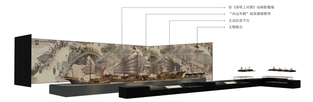 越窑青瓷因逐渐受到社会的认可与青睐而声名远播,或沿河运往中原繁华都市,或跨海销往世界各地。缓缓移动的背景画面,犹如千船往来,挥令扬帆,沿途留下的都是青瓷曾经的辉煌。