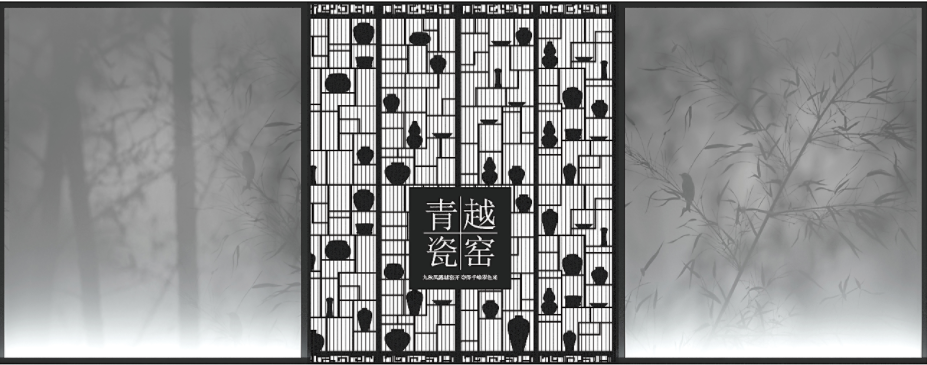 在《越窑青瓷陈列》的入口处设计一个序厅,首先起到隔断作用,其次是引导观众驻足,以便先对整个展览有个大概的了解,恬静优雅的氛围让观众以平静的情绪开始观展。