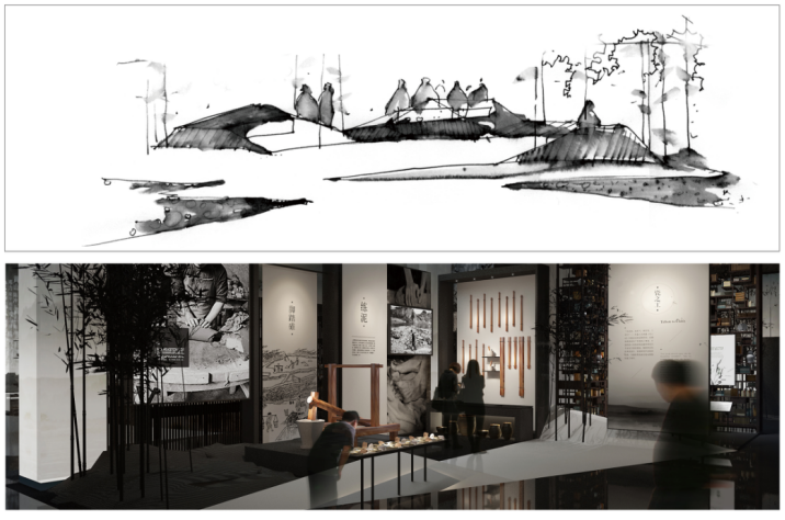 无论是距今七千年的史前河姆渡文化的农业文明,还是炉烟缭绕千余年的越窑青瓷器,抑或是通行大江南北的“宁波帮”,无不与慈溪独特的文脉有着密切的关系。把握了这核心的一点,通过最纯粹的现代形式设计语言叙述一个城市的历史和人文风貌,让历史文化的现场感、慈溪青文化的地域性在现代设计语言阐释下,在现代展示手段的烘托中,得以淋漓尽致的展现。