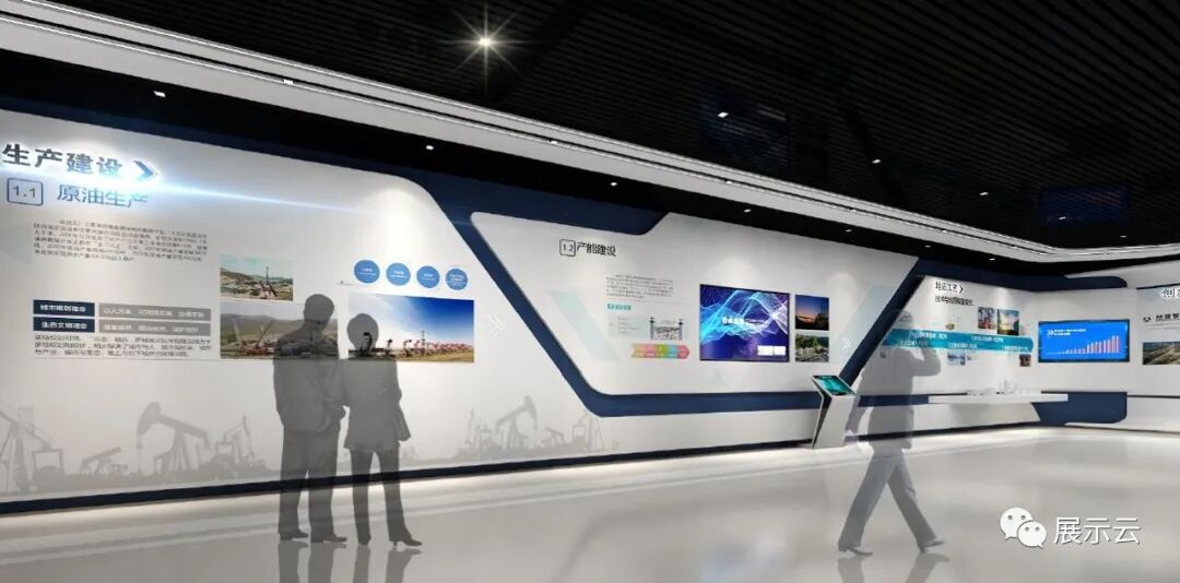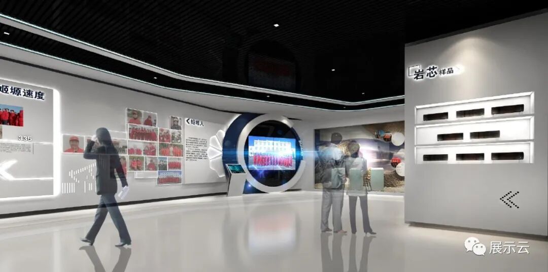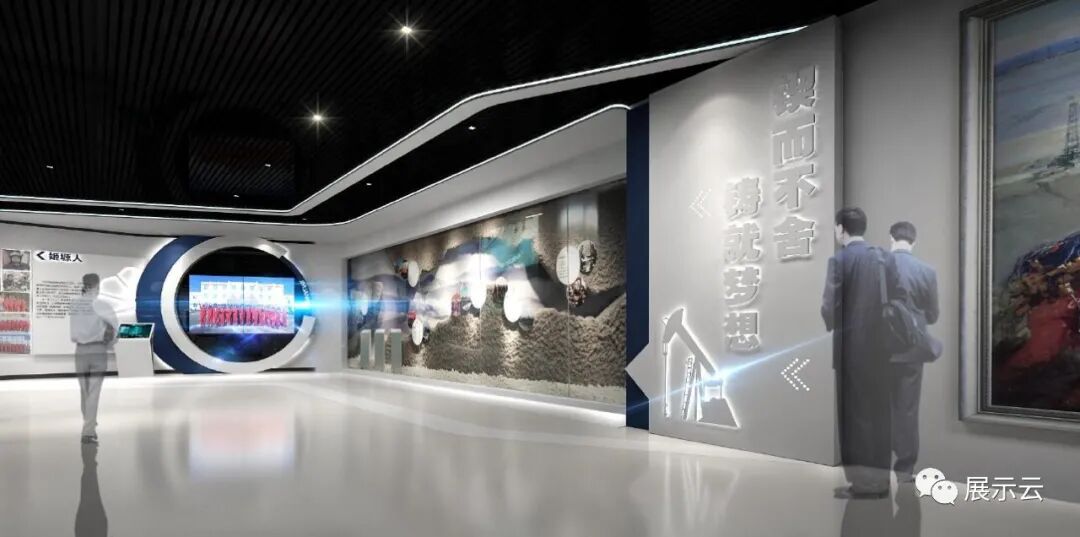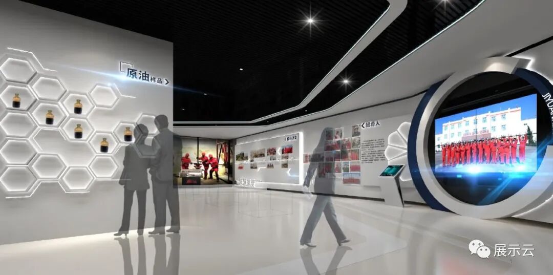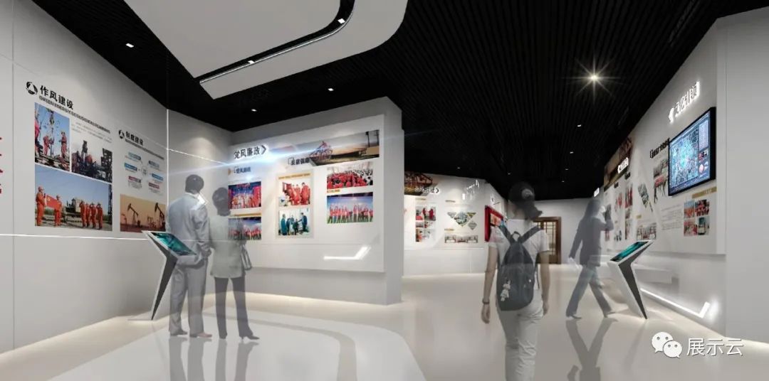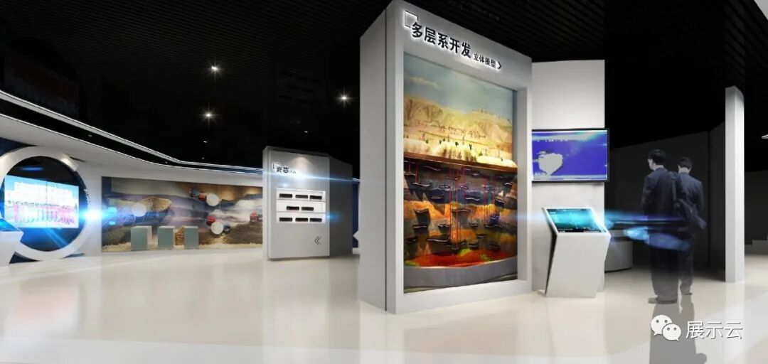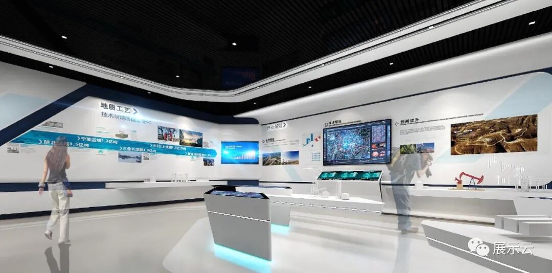 能源企业员工文化教育中心展厅设计:抽象工业元素,营造简约科技展示空间