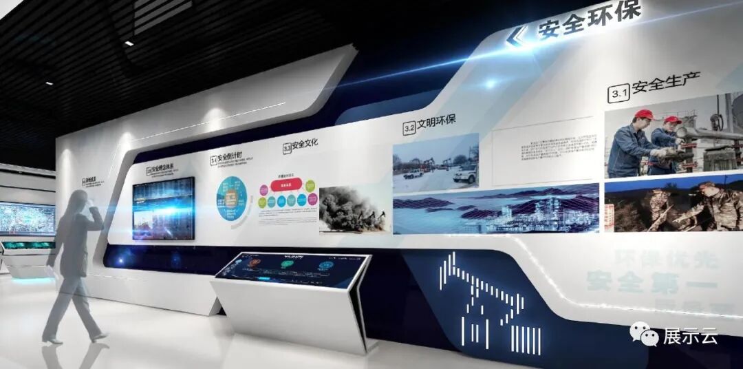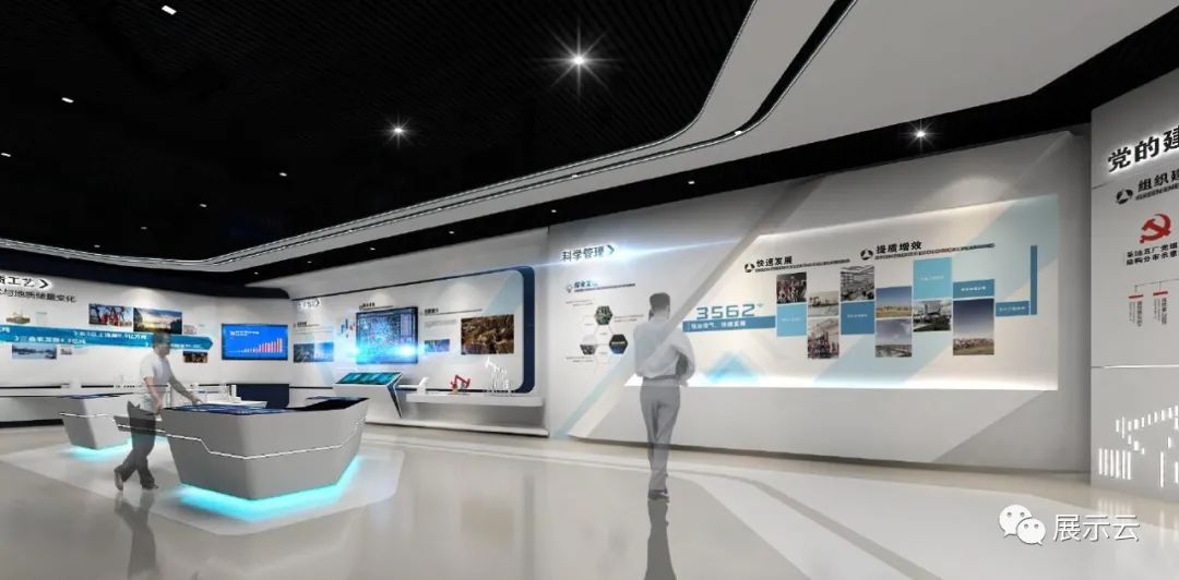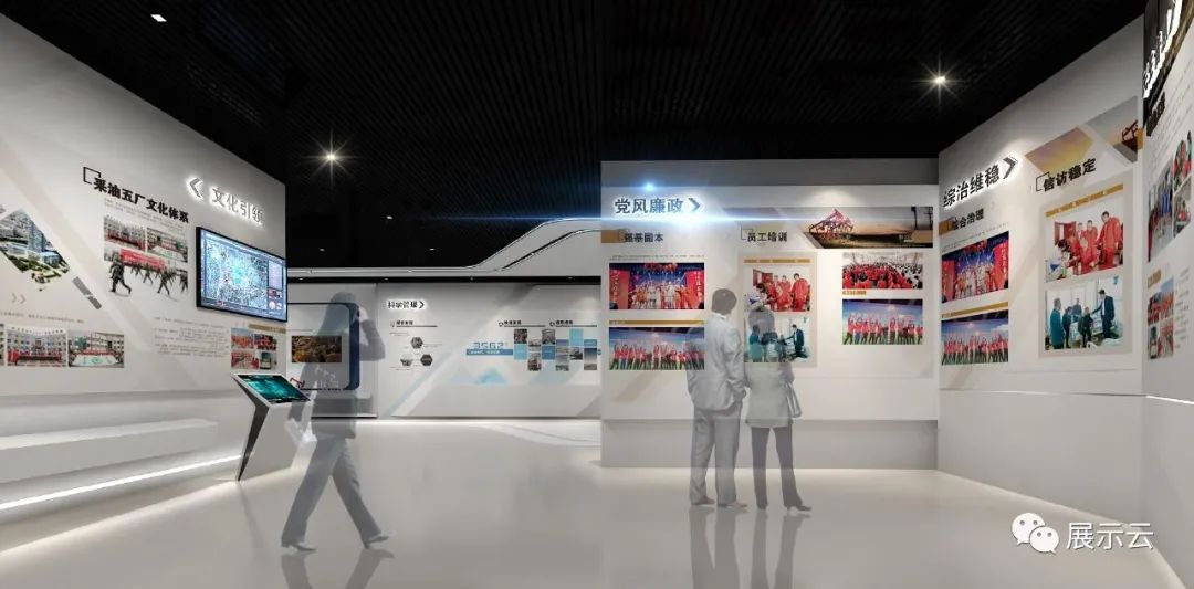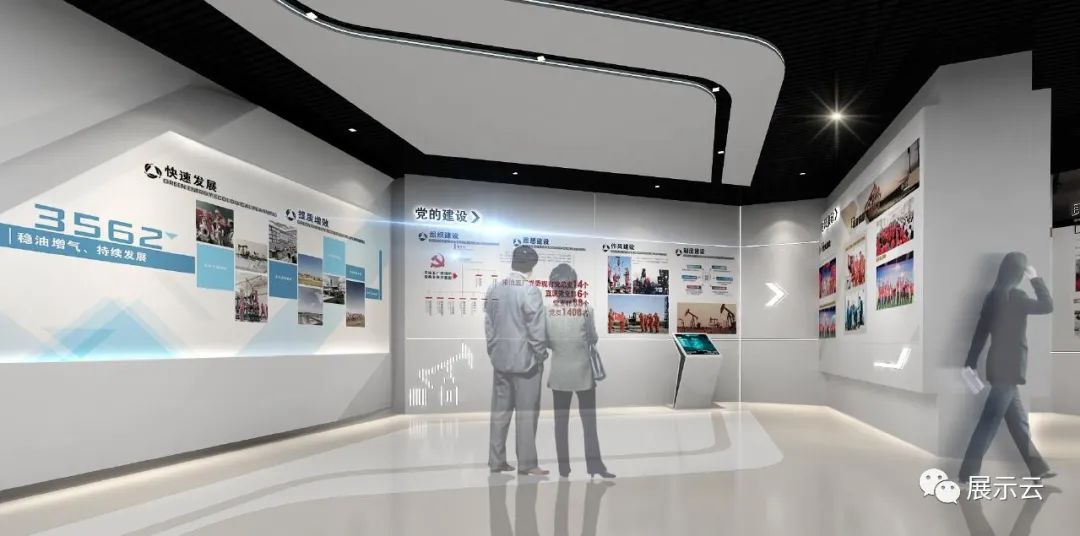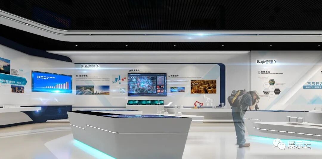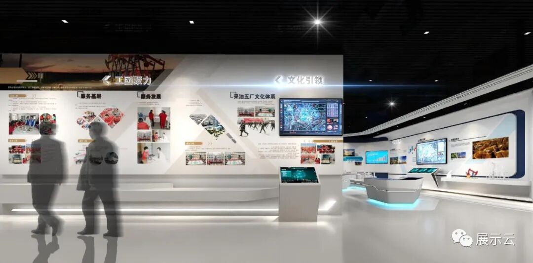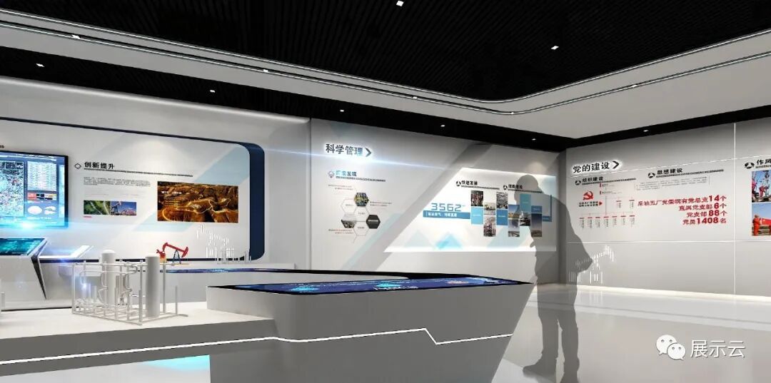 能源企业员工文化教育中心展厅设计:抽象工业元素,营造简约科技展示空间