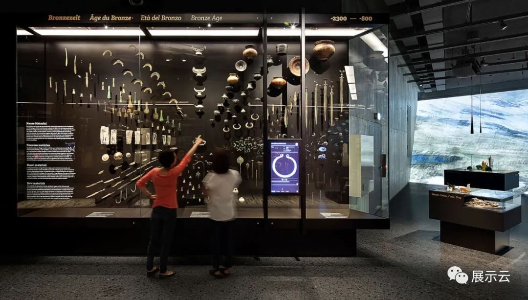 人文,自然,地理:是展览的三大主题,展览主要展示关于赫尔维蒂人考古研究中1300个物件。(赫尔维蒂人:公元前1世纪时,主要分布于现今瑞士高原及德国西南部的一支凯尔特民族部落)。展览的中央展示区“人文”部分,展示了长达十万年之间,人类历史从旧石器时代到中世纪早期的文物。通过大量文化的展示,该时代活灵活现的展示在观众面前。“自然”阐述了大自然对人类的影响,以及人类与环境之间的相互作用。大型生动的动画展示设计直接将瑞士的自然风光领入博物馆里。在游览参观的同时,通过自然历史文化的交互设计以及多媒体交互中心,游览者可以再次领略到同样的风景。“地理”展览中,展示了关于展示文物的具体地理位置参考。一个由3000多个零件组成的铝质金属地质模型悬挂在展厅的顶部,高低不一,让游客仿佛漫步徘徊于瑞士美好秀丽的风光之中。通过灯光的照射效果,这个金属地质模型,形成了光与影的舞蹈,让游客在这时光遂道里尽情感受着来自远古的生活和诗意。