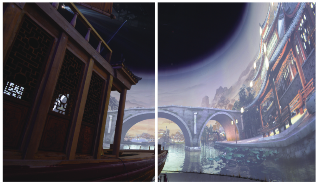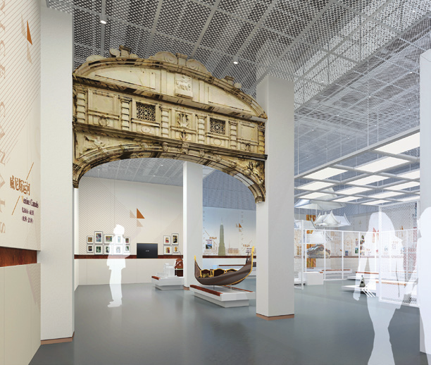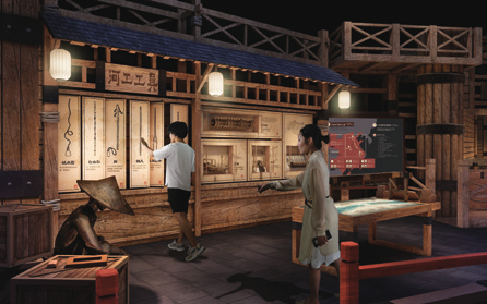展览以“城市历史景观再现”的模式打造一个有历史场景和真实业态、让观众可以互动体验的展厅。入口以船行至岸边开始,由一条主街将不同空间、不同时间的“运河故事”串联,以真实的视觉、触觉、味觉、嗅觉、听觉体验,从多个维度让观众身临其境,开启一场穿越时空之旅。