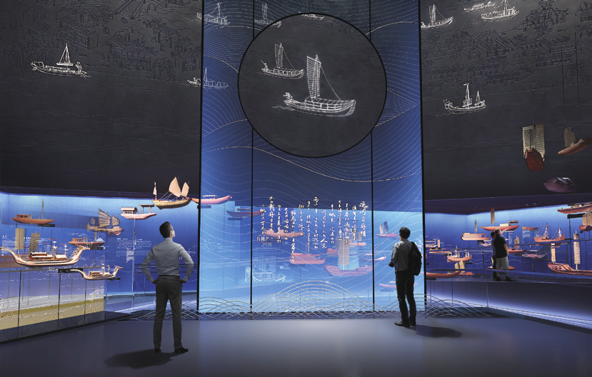 展览为中国大运河舟楫主题的多媒体互动体验展,以实体体验结合数字多媒体虚拟体验的方式,讲述大运河舟楫的演变、舟楫的类型等相关知识与故事,展示大运河舟楫带来的南北文化融合与古今美好生活。