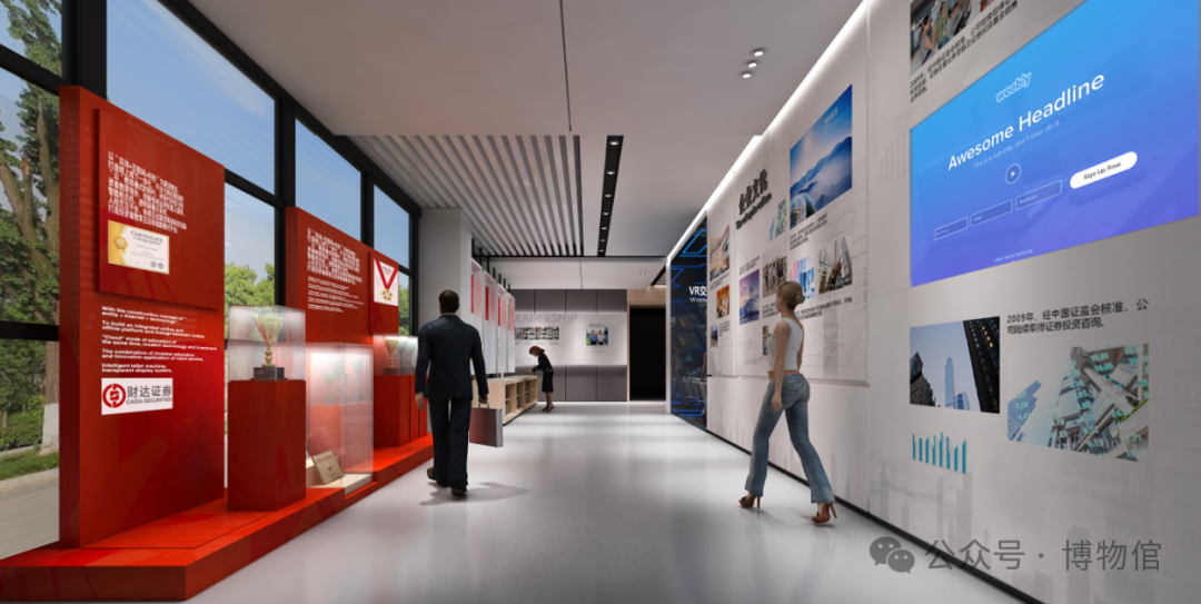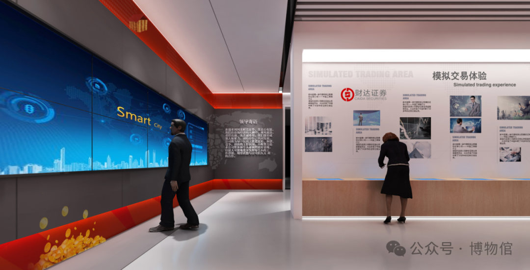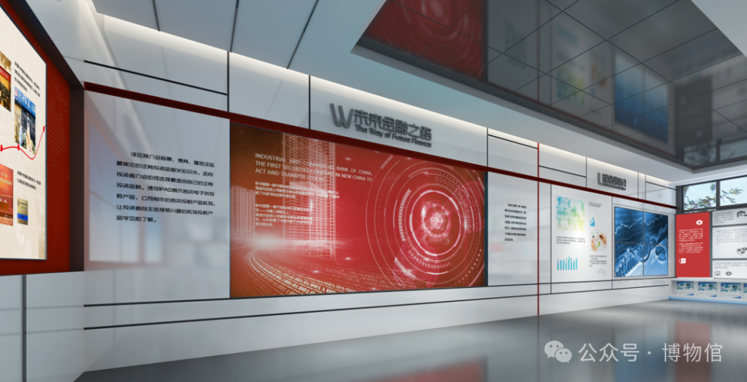 通过陈列、墙面展板、拼接屏的形式,通过对人、物、事、法等方面的讲述,来呈现过去、今天、未来的证券历史和发展趋势。动静结合,有仪式感,增强观学趣味性和记忆性。