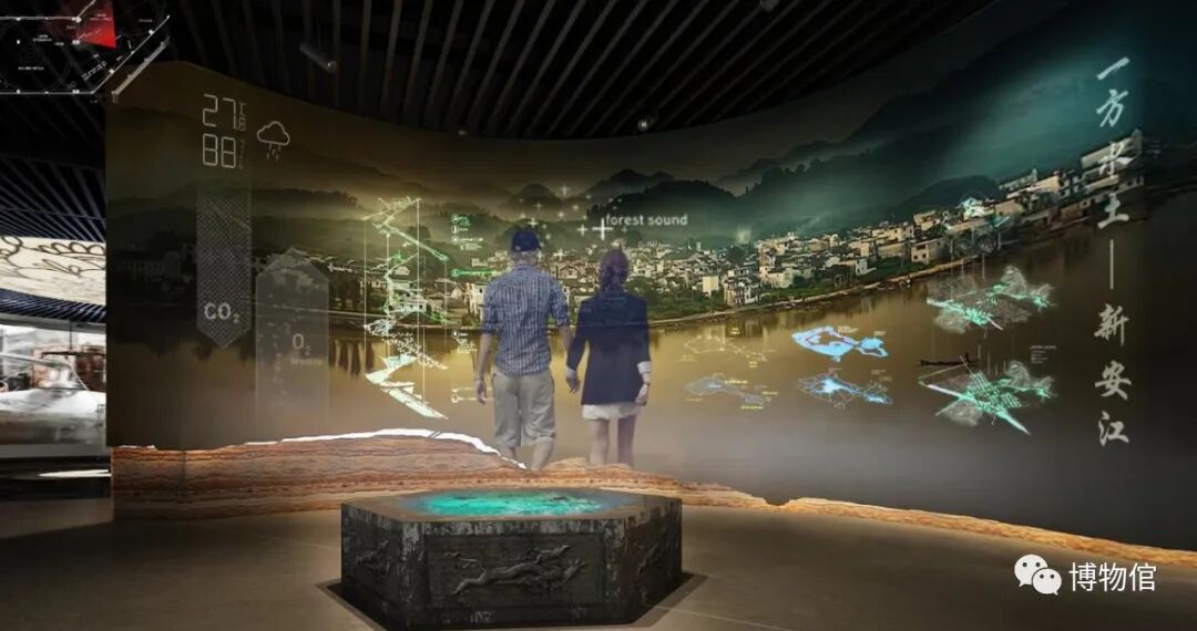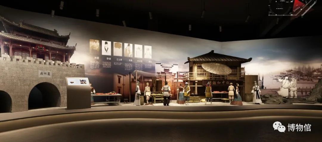 梅城严东关城头半场景结合区域地图,展现古梅城的地理位置、历史文化等内容。