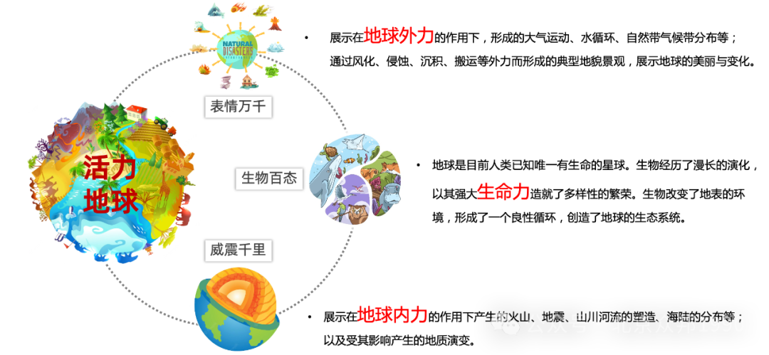 45亿年的漫长演变,让地球变成一个千姿百态、物种繁多、资源丰富、生生不息的蓝色星球。 展厅从地球内力、外力及物种的生命力三个方面展示地球的“活力”,介绍地球科学的基本概念以及演化过程,引领观众感受自然之美,生命之美、和谐之美,践行珍爱地球、保护自然的生态文明理念。