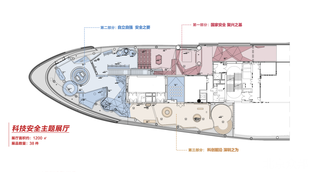 展厅包含三个部分:国家安全 复兴之基、自立自强 安全之要、科创前沿 深圳之为。