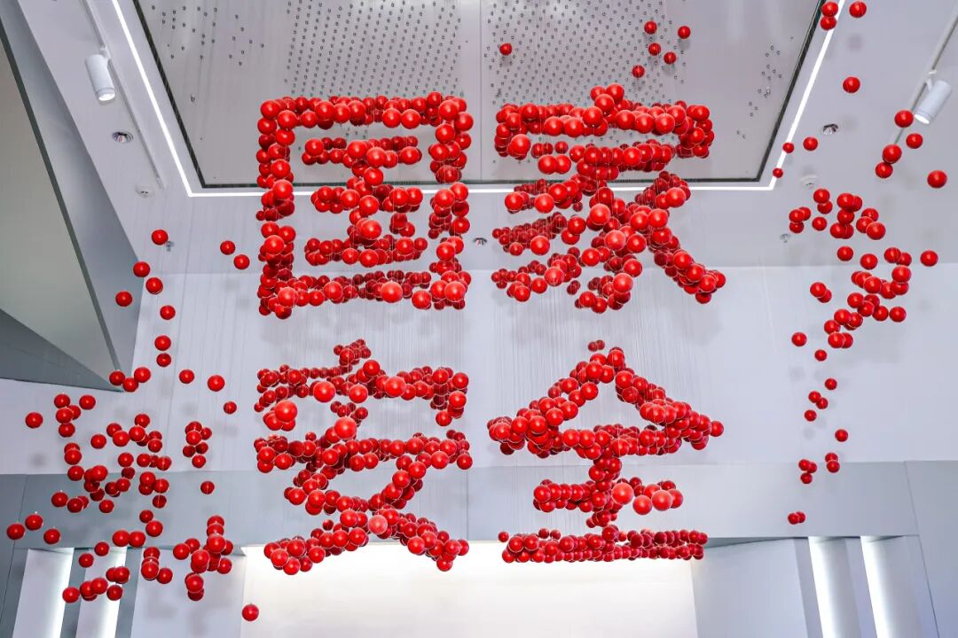 入口的巨幅雕塑墙,展示了我国科技发展的缩影,“国家安全”和基石造型LED构成视觉核心,寓意科技安全是国家安全的重要组成部分和重要保障。