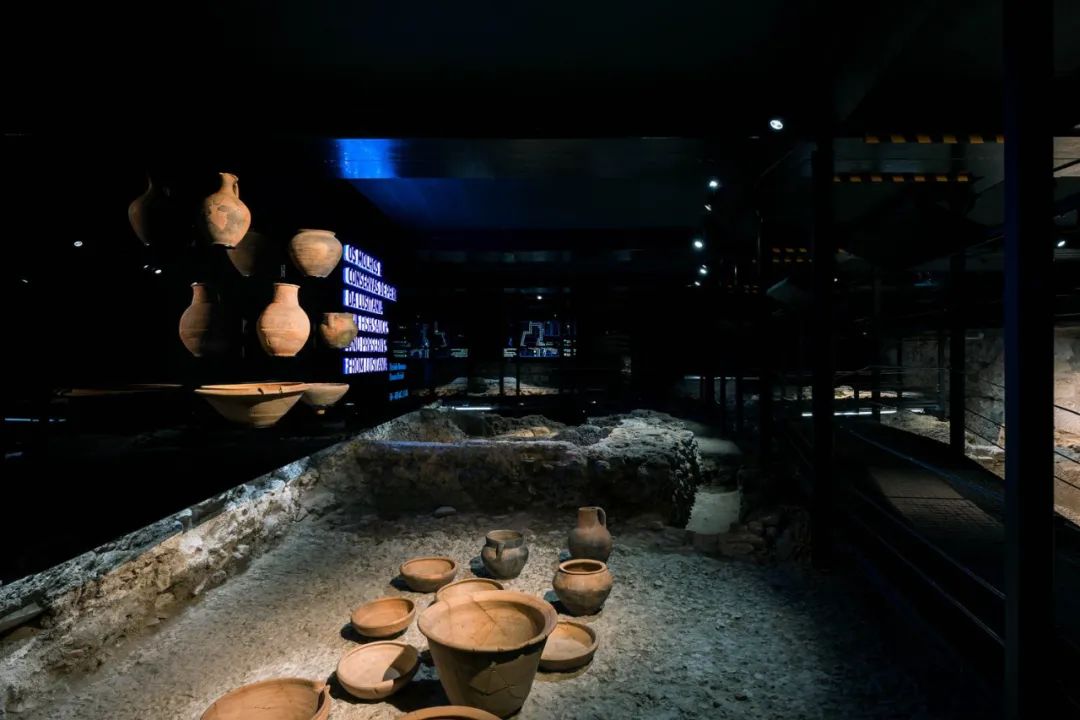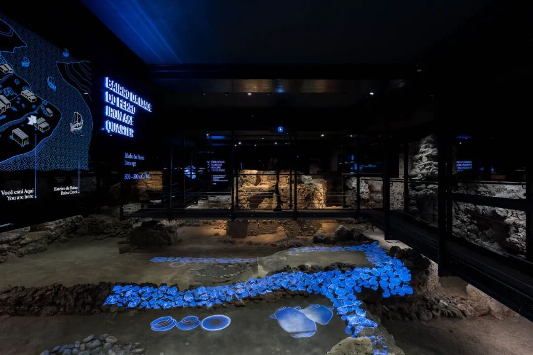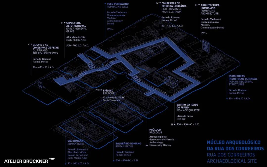 参观者通过对在里斯本留下印记的时代的概述,并结合展览中物品的时间顺序预览进入:它们的范围从铁器时代腓尼基房屋的墙壁遗迹到一直使用到 19 世纪的烤箱。博物馆的标志性展品包括一块公元前 3 世纪的陶器碎片,上面展示了一艘程式化的船。展示现场发现的物品的互动展示柜邀请参观者探索。