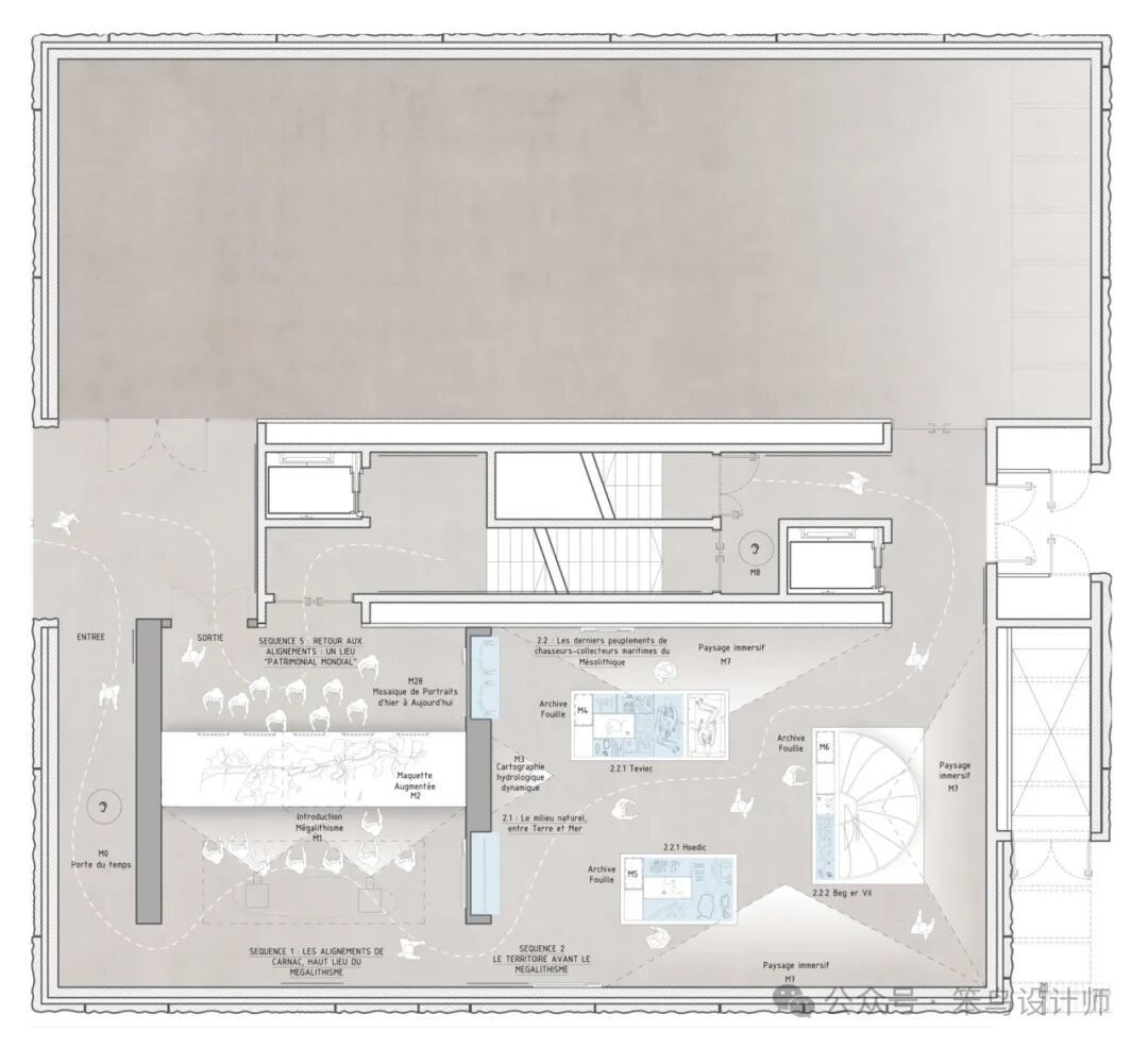 项目地点虽然由于居住环境而变得复杂,但其地理位置十分重要,因为它标志着该镇的入口,并构成了各个巨石遗址和卡纳克镇中心之间的明显界面。在城市规模上,围绕阈值和透视效果构建的荒原景观的恢复旨在加强这种地域共鸣。