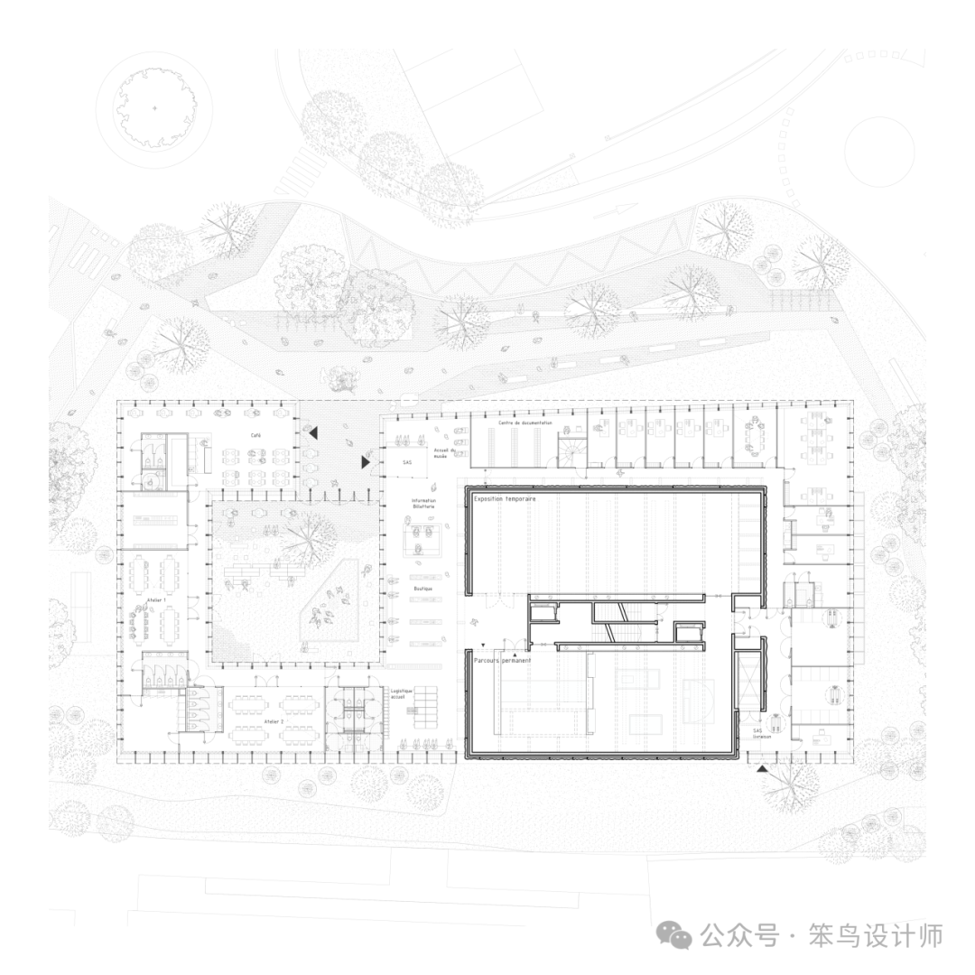 直接的城市背景需要从中抽象出来,特别是在展览路线方面。然而,博物馆并没有背弃这座城市。低矮的画廊,非常开放和活跃,呈现出一种活泼和热情的氛围。它汇集了用于娱乐、教育和工作的所有空间。它围绕着教育花园的出现和划定界限,在空间上和象征意义上将收藏和调解置于博物馆的核心。