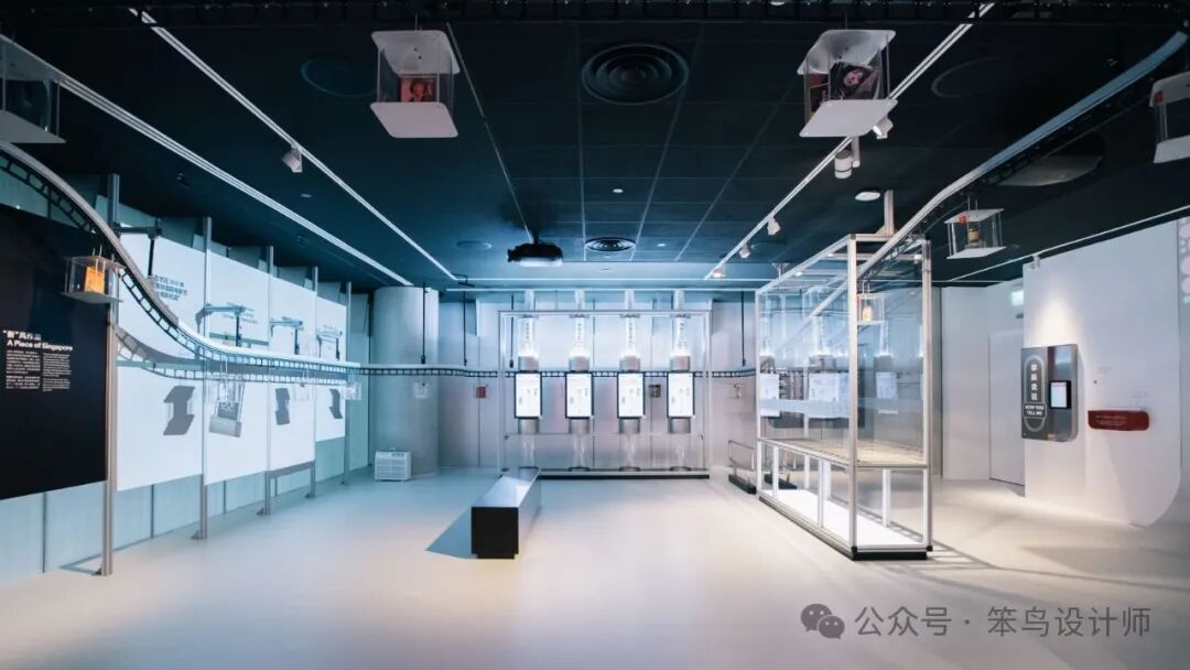 在这个白色和金属质感的空间里,未来是一张空白的画布。新加坡华人出口产品在传送系统上空盘旋,穿过庞大的背景投影。