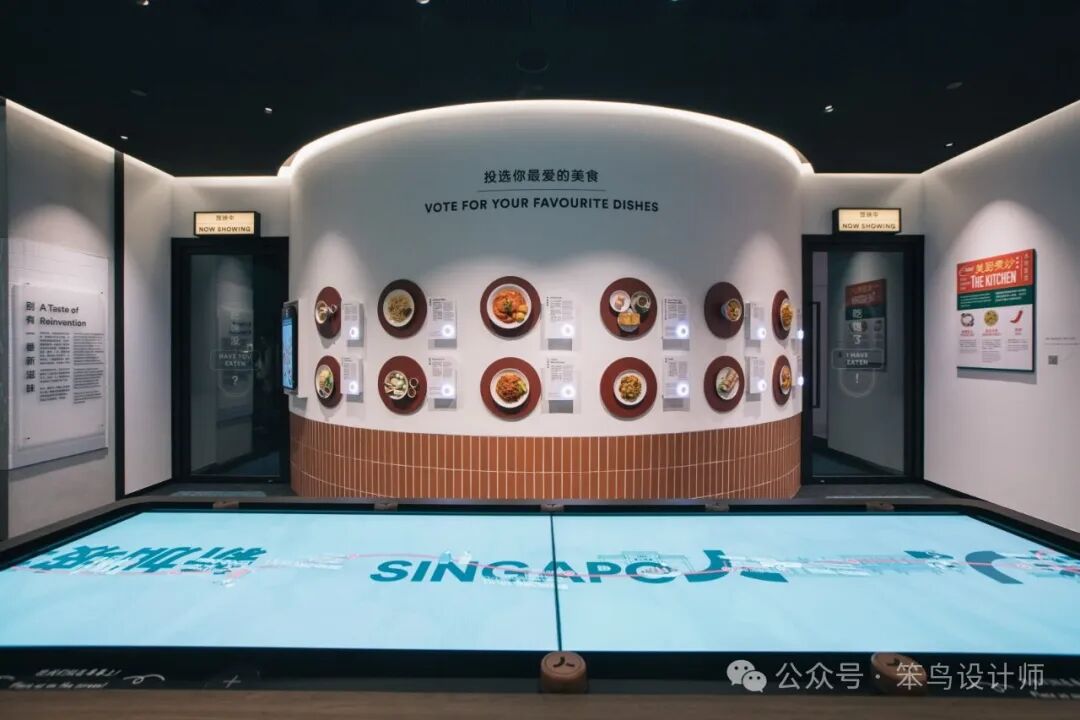 为了传达不同文化如何融合在一起创造出真正的新加坡特色,我们根据不同种族交往的地方——游乐场和小贩餐桌——创建了体验空间。