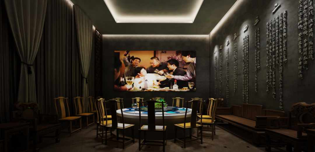 饭店包厢内,影片表现男主角受邀参加同学聚会,到了之后发现,过去打打闹闹说说笑笑的老同学现在变得吹捧、恭维,自己在这些礼节中变得飘飘然,殊不知一切都是准备好的圈套,等待着自己钻进去。