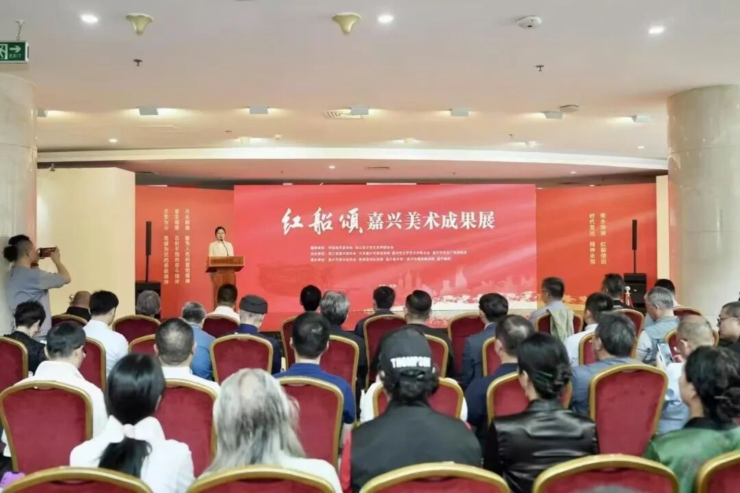 展览“红船颂·嘉兴美术成果展”以“红船领航”“文脉绵长”“创新发展”为经纬,既有1959年南湖革命纪念馆建馆初期的复刻画作,也有AI技术重构的“数字红船”互动装置。当启航的浪头从年轻学生的手机镜头里拍打而出,信仰的传承在此处重叠。