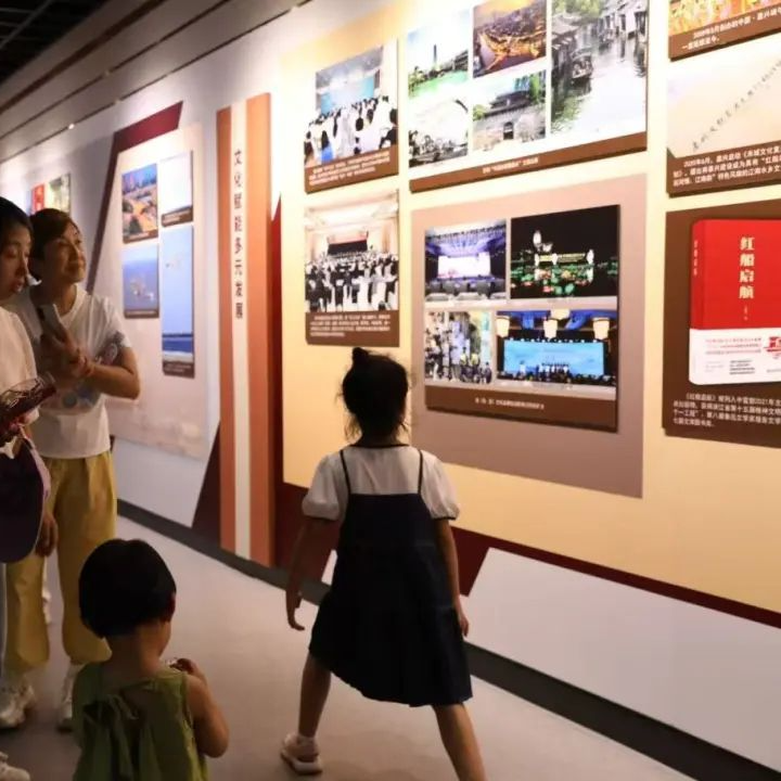 6月20日,南湖革命纪念馆特别策划的“秀水泱泱 红船见证——‘红船精神’在嘉兴”专题展在纪念馆临时展厅正式启幕。展览分为“红船起航铸根脉”“百舸争流奋楫先”“千帆竞发勇者胜”“万舟共济民生安”四个部分,以“红船精神”引领下嘉兴独特实践为主题,以“首创”“奋斗”“奉献”为主线,通过一张张精彩图片、一组组详实数据、一项项发展成果,着重展示二十年来嘉禾大地在经济发展、文化赋能、社会治理、生态文明等方面发生的精彩蝶变,彰显了“红船精神”历久弥新的真理力量和实践伟力。