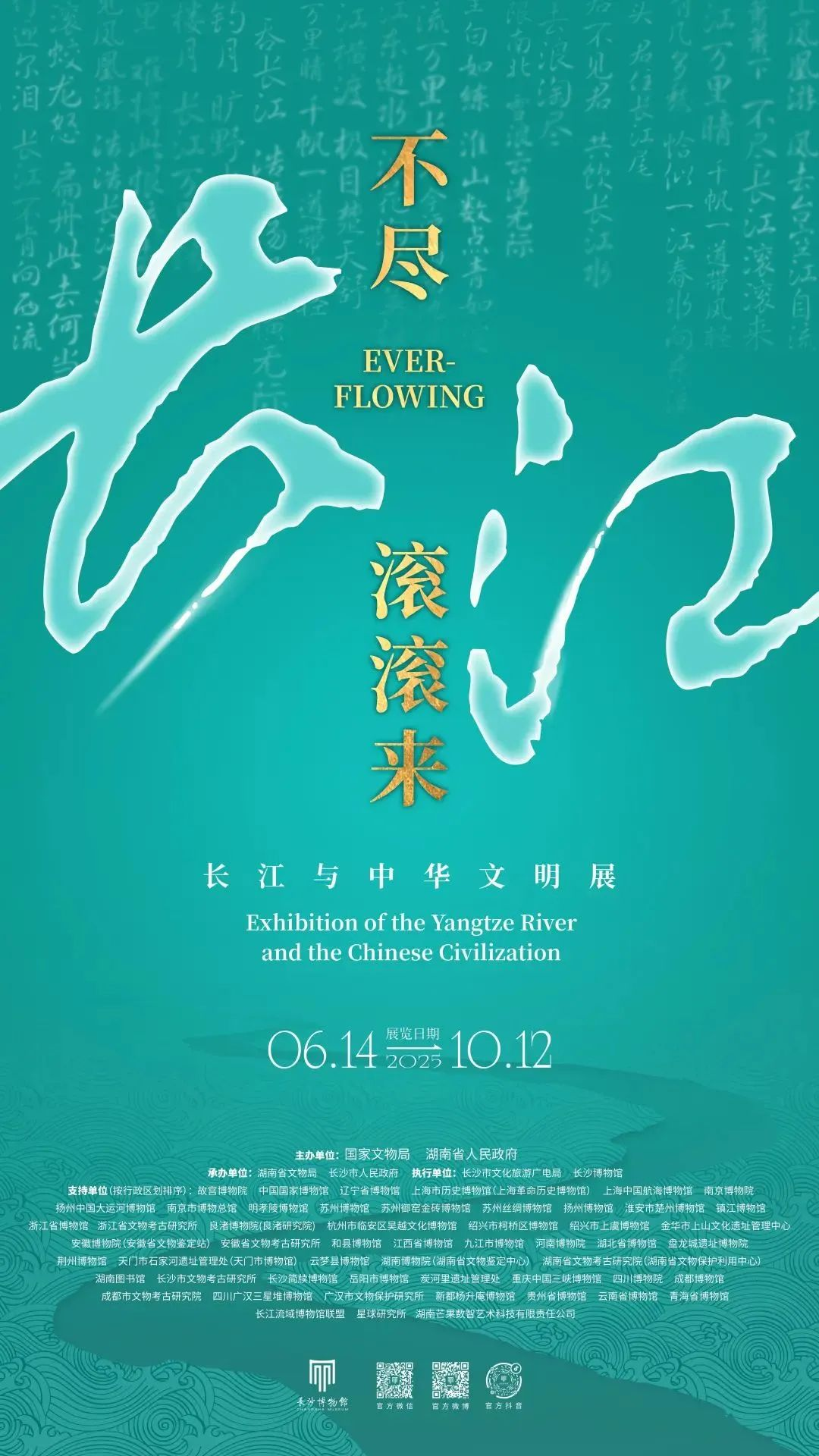 博物馆头条按:6月14日,作为2025年文化和自然遗产日主场城市活动主题展览,“ 不尽长江滚滚来——长江与中华文明展 ”在长沙博物馆盛大开幕。该展览由国家文物局和湖南省人民政府主办,51家文博机构鼎力相助, 汇集200余件(套)珍 贵文物,是长沙博物馆新馆迁建以来规模最大、水平最高、珍贵文物占比最重的展览,将生动呈现长江之于中华文明起源、形成与发展的伟大作用。