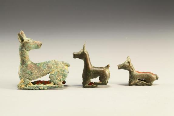 铜圆雕鹿:造型生动,反映了鄂尔多斯地区对自然生灵的崇拜,兼具艺术与宗教价值。
