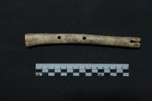 龙山时代末期的吹奏乐器,音孔清晰,是祭祀或娱乐的重要工具。