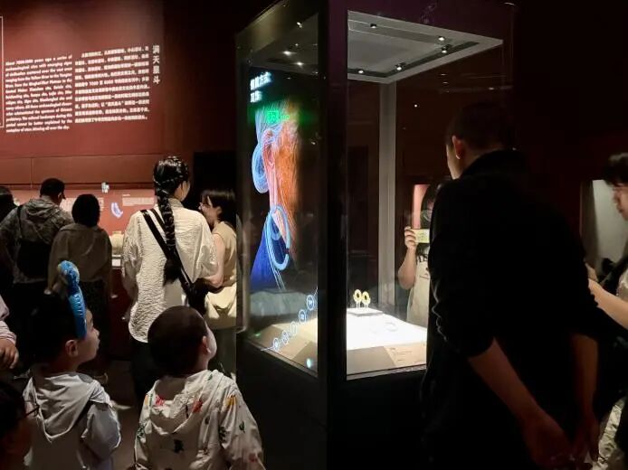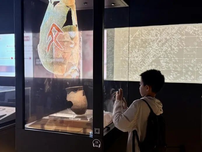 兴隆洼玉玦数字化展项吸引了小朋友的目光