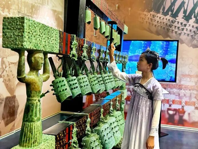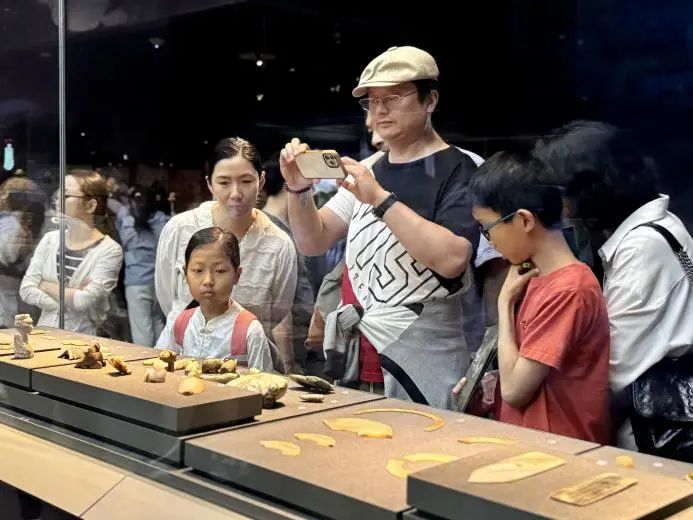 家长朋友和小观众在妇好墓出土玉器前流连忘返