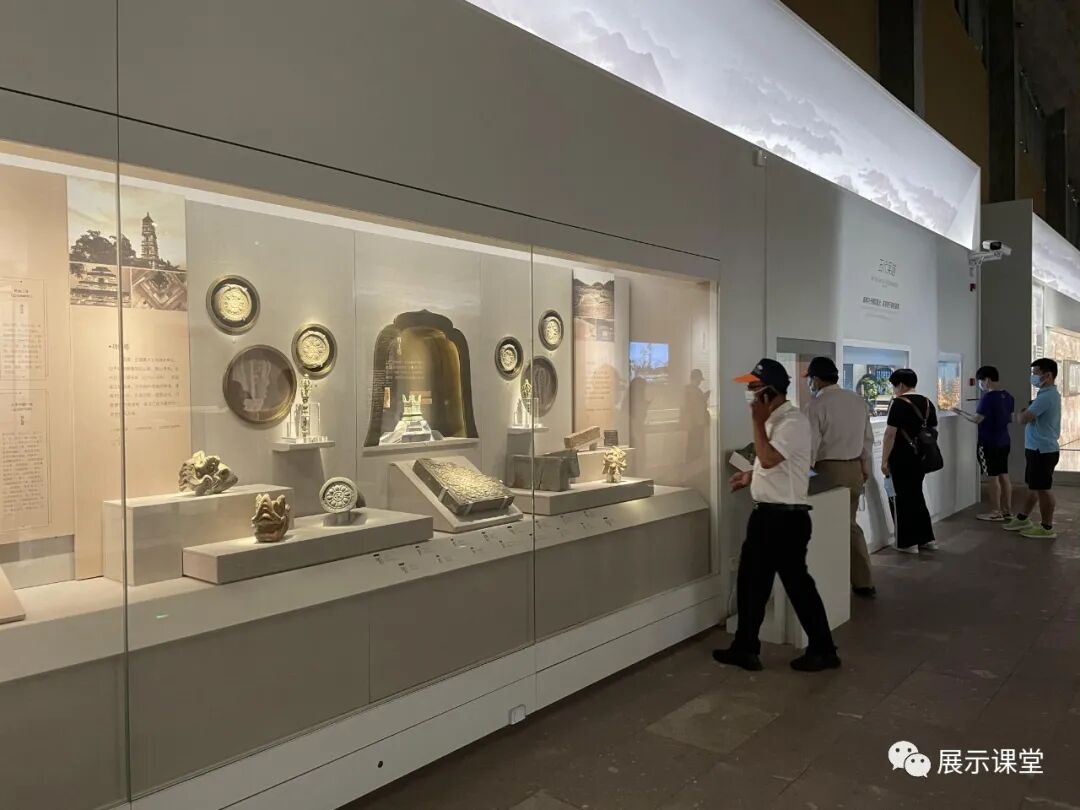 展柜:定制专业展柜,内部高低错落,铝板UV打印内容与展柜藏品一一对应,达到了 展藏结合的效果。