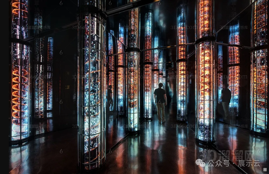 粗野主义的核心精神——“结构功能的诚实性”,在展厅中被极致放大。巨大的梁、柱、剪力墙,这些通常被隐藏的骨骼,被置于聚光灯下,成为空间最有力的装饰元素。管线管道系统不再躲藏,而是沿着裸露的混凝土表面清晰延伸,形成充满工业美感的脉络。 这里没有虚假的掩饰,只有结构逻辑的坦诚呈现。
